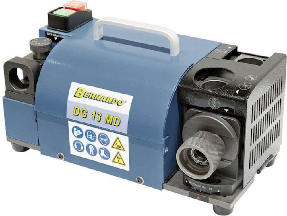 Ostřička – bruska na válcové vrtáky, průměr 2-13 mm, elektrická 230 V, v sadě s upínacími kleštinami a brusným kotoučem CBN – Bernardo DG 13 MD Přístroj určený na broušení (regeneraci) všech standardních 2břitých vrtáků se spirálovým profil ...
