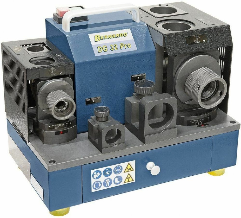 Ostřička – bruska na spirálové vrtáky, průměr 2-32 mm, elektrická 230 V, v sadě s upínacími kleštinami a diamantovým brusným kotoučem SDC – Bernardo DG 32 Pro