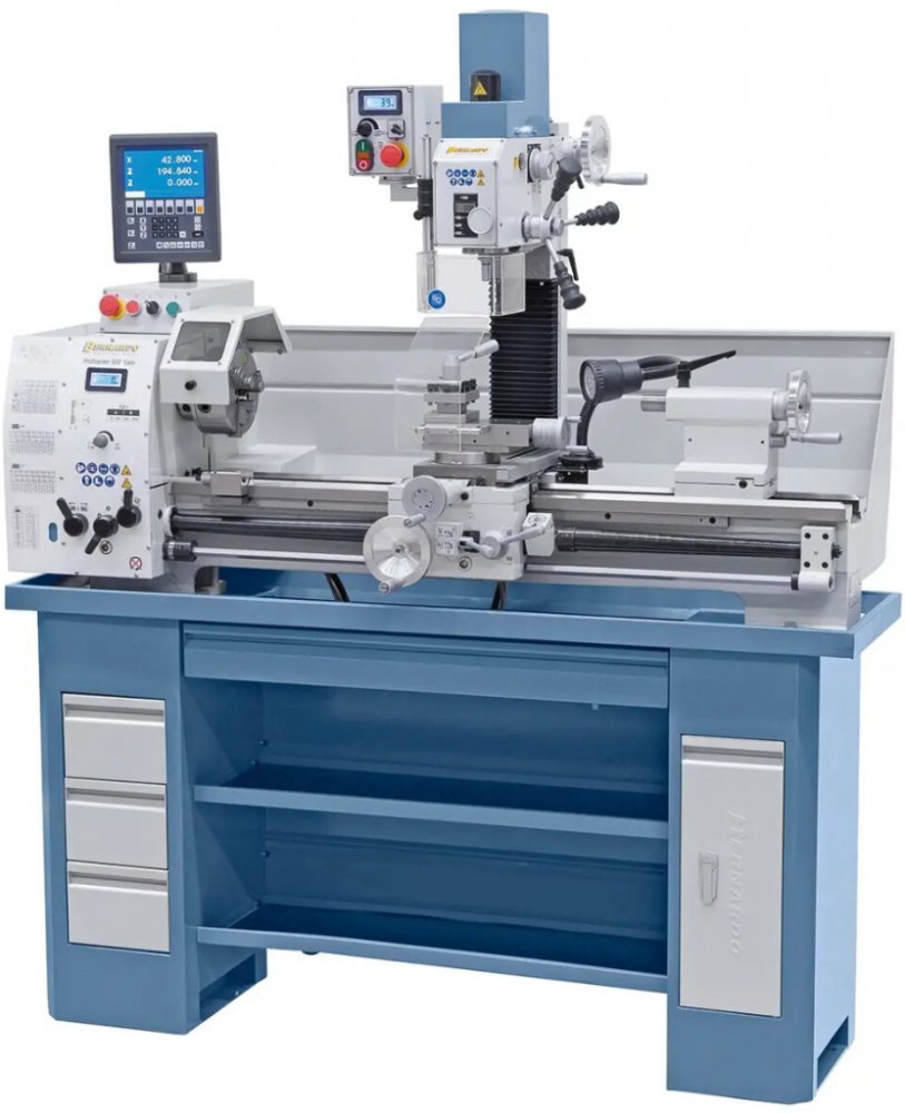 kombinovaný soustruh s frézovacím nástavcem, frekvenční měnič otáček, napájecí napětí 400 V, výkon 1,5 kW, točná délka 900 mm, točný průměr nad ložem 320 mm, otáčky (2 st. - plynule) 75 ÷ 2000 U.min-1, provedení vřetena DIN 55029, D1-4“, průchod vřetena 38 mm, kužel pinoly MK 3, zdvih pinoly 100 mm, rozměry 1650 x 650 x 1120 mm