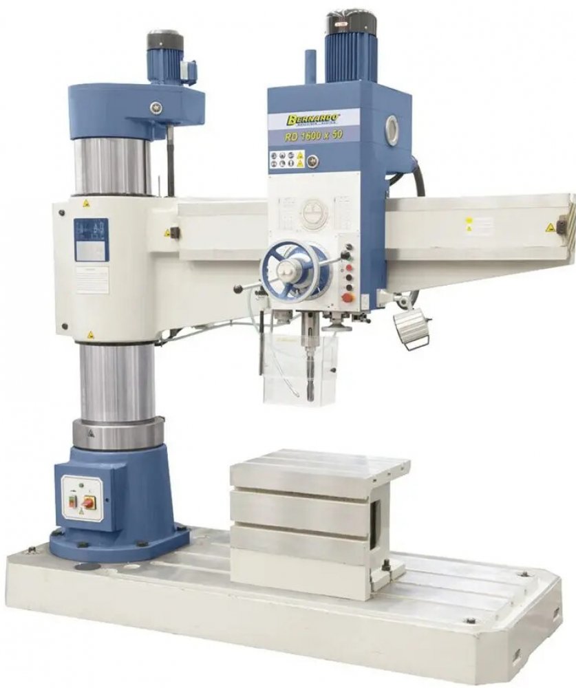 Radiální vrtačka Bernardo RD 1600 x 60 AKCE - ZDARMA příslušenství vrtáky s kuželovou stopkou Radiální vrtačka RD 1600 x 60 okouzlí svojí velmi pevnou konstrukcí. Speciální umístění sloupu zachová stálost přenášené sily po ramenu i při velkém vyložení. Přestavení a upevnění vrtací hlavy po ramenu ručním kolečkem na přední straně. Velká a broušená základna pro upínání velkých obrobků Silnostěnný, l...