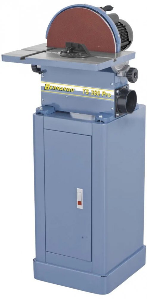 Čelní - talířová bruska Bernardo TS 300 TOP Bruska TS 300 TOP je velice vhodná pro dosažení přesných a velmi jemných povrchů dřeva, neželezných kovů a plastů. Použitím brusných výseků s rychloupínáním na suchý zip lze velmi rychle provádět výměnu těchto brusných nástrojů na ploše brusného talíře. Význačné rysy talířové brusky Bernardo TS 300 TOP Standardně dodáváno se zabudovanou brzdou k zastavení brusného talíře/kotouče Stabilní základna s nouzovým vypínačem a gumovou podložkou Robusní sklopný brousící stůl Sériově dodávána se sklopným úkosovacím dorazem Vhodné zařízení pro univerzální broušení materiálů jako je dřevo, kov, plast, neželezné kovy Vyvážený brusný talíř má tichý a klidný chod Rychlá výměna brusiva pomocí rychloupínání na suchý zip Stabilní základna stroje s Odsávací hrdlo pro odsávání brusného prachu ve spodní části pracovního stolu zlepšuje podmínky práce. Poháněna výkonným motorem vhodným pro podmínky delšího nasazení Otočný stůl od -3° až +45° s aretací na 0° / 22,5° / 45° Oboustrané naklápění brusného stolku vyrobeného z litiny