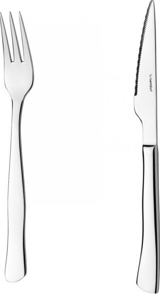 Luxusní sada 6x nůž, 6x vidlička v dárkovém balení.Nůž na steak se od běžného stolního nože odlišuje špičatým tvarem a pilovitým ostřím, kterým maso snadněji nakrájíte. Je vyroben jako monoblok - jeden kus z materiálu pod označením 18/0. Materiál, ze kterého je vyroben nůž, je plně recyklovatelný a je vhodný pro styk s potravinami. Čepel nože je kalená a následně zoubkovaná, aby dokázala zabezpečit svoji řeznou funkci. Celková délka 222 mm.Vidlička na steak používá se nejčastěji při stolování na napichování, přemísťování a konzumaci jídla. Vyrobena je z plně recyklovatelné chromniklové oceli pod označením 18/10, ideálním materiálem pro styk s potravinami. Celková délka 205 mm.Záruka 2 roky.Výrobce: Berndorf - Sandrik SK