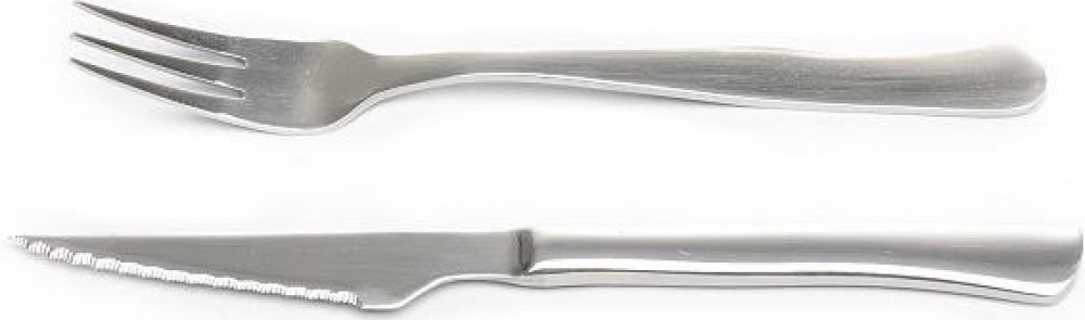 Luxusní sada 6x nůž, 6x vidlička v dárkovém balení.Nůž na steak se od běžného stolního nože odlišuje špičatým tvarem a pilovitým ostřím, kterým maso snadněji nakrájíte. Je vyroben jako monoblok - jeden kus z materiálu pod označením 18/0. Materiál, ze kterého je vyroben nůž, je plně recyklovatelný a je vhodný pro styk s potravinami. Čepel nože je kalená a následně zoubkovaná, aby dokázala zabezpeči...