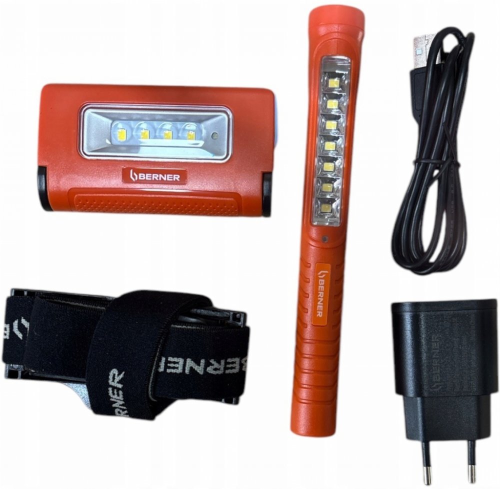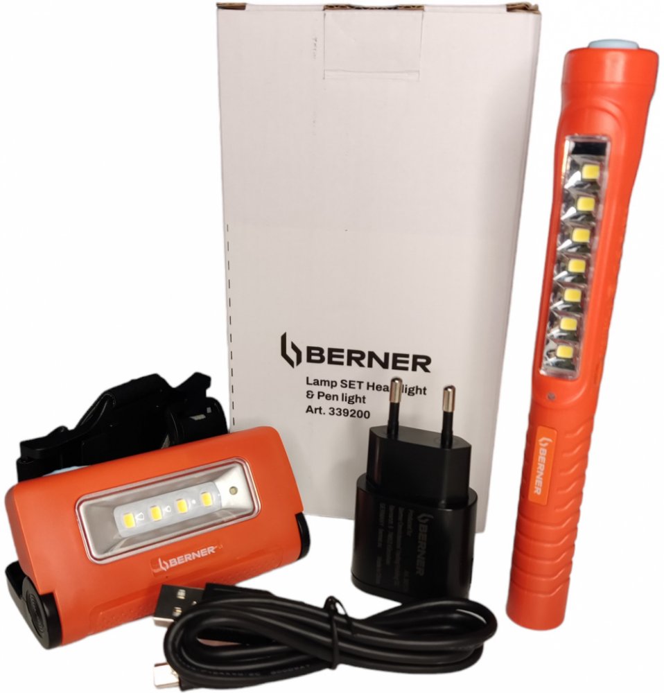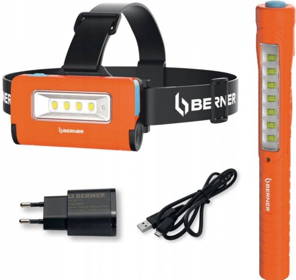 BERNER LED svítilna PEN LIGHT USB-C + aku čelovka USB-C + nabíječka + kabel