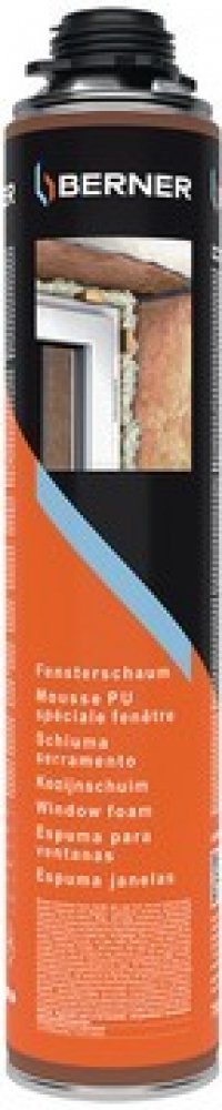 Pěna na okna Berner, to je dobrý výkon zejména pro okenní aplikace díky střední míře roztažnosti během vytvrzování. Dobrá přilnavost na téměř všech površích. Spolehlivá stabilita bez smršťování či následného roztažení. Třída reakce na oheň: B3, Tepelná vodivost (DIN 52612): 30.2 mW/mK, Úroveň zvukové izolace: 58 dB, Doba vytvoření škraloupu: 7 min, Opracovatelné řezem: 30 min, Hustota: 22 kg/m³.