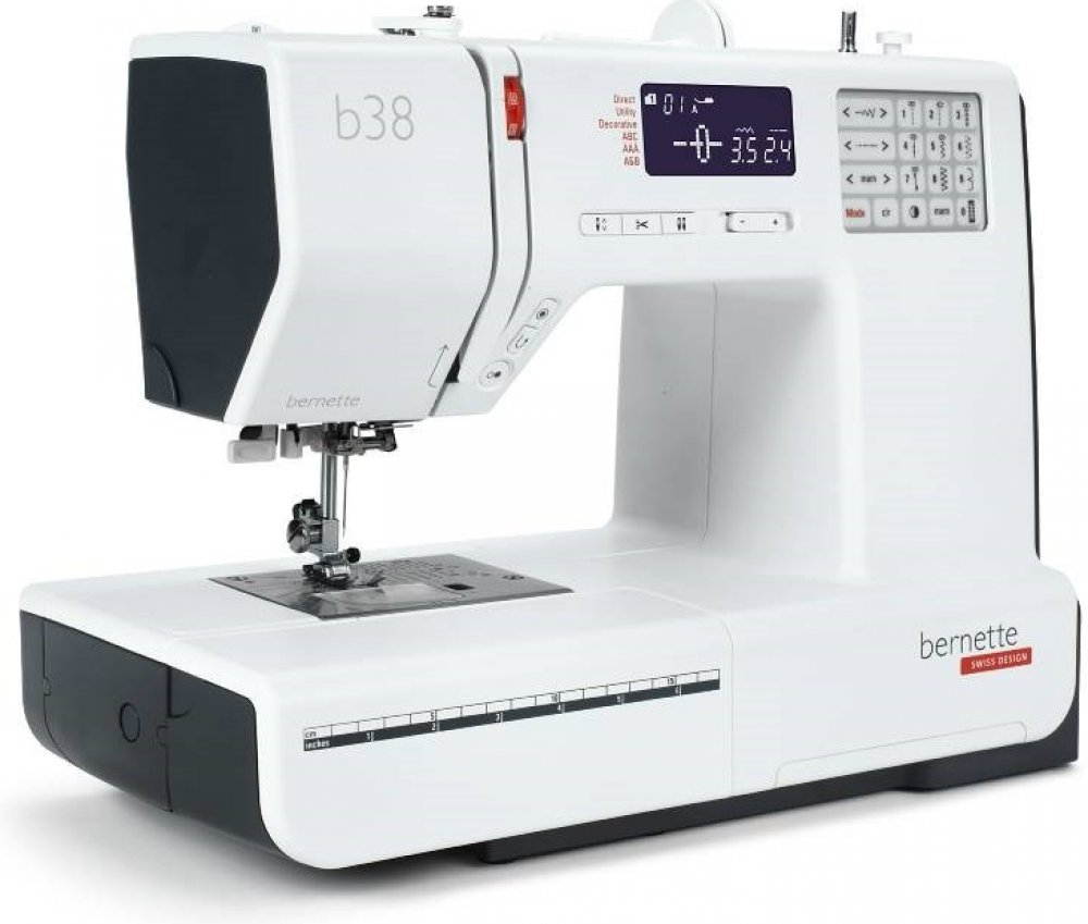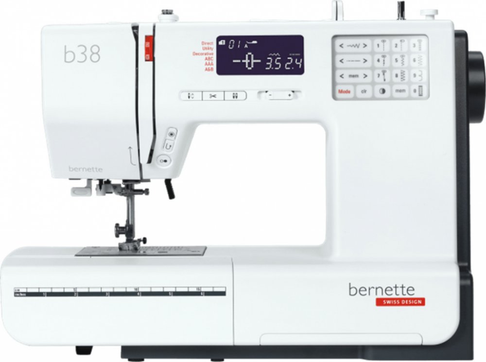 Bernette 38 je domácí elektronický šicí stroj s automatickým odstřihem a 394 druhy šicích stehů včetně 8 druhů knoflíkových dírek a abecedy. Všechny knoflíkové dírky jsou jednokrokové. Přehledný LCD displej se zobrazením nastavení typu, šířky a délky stehu.