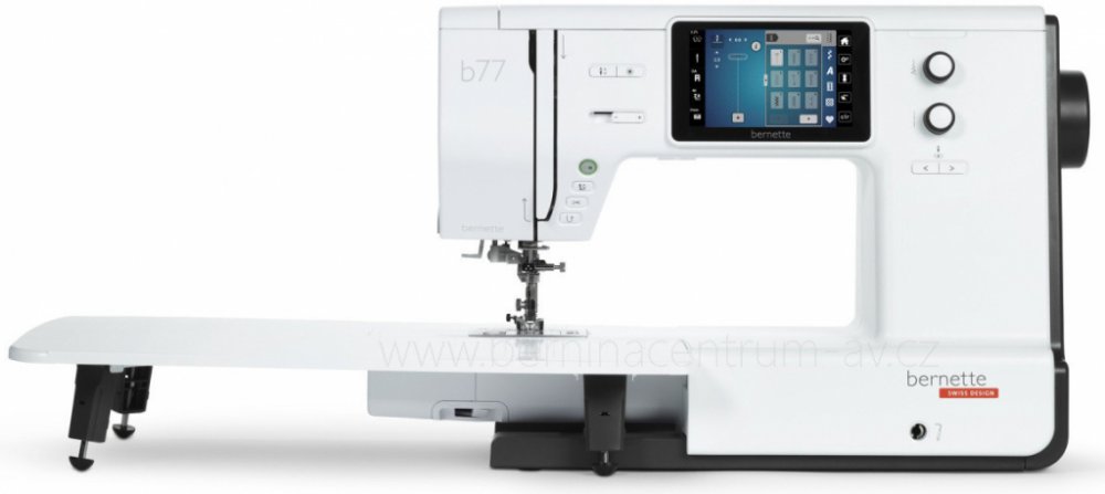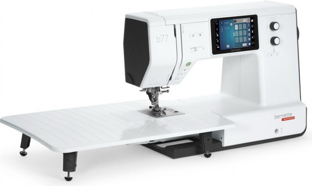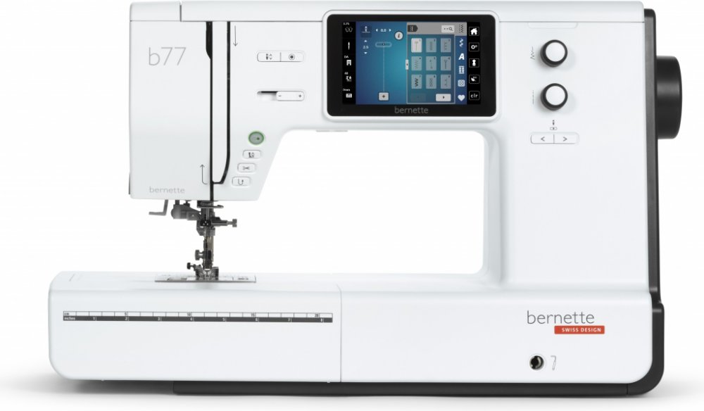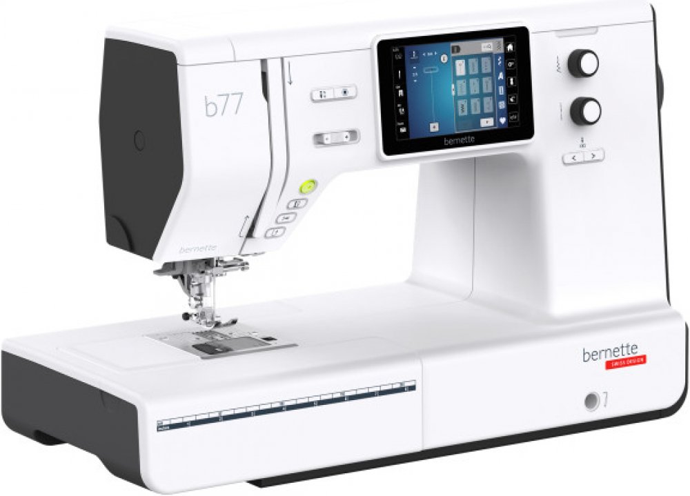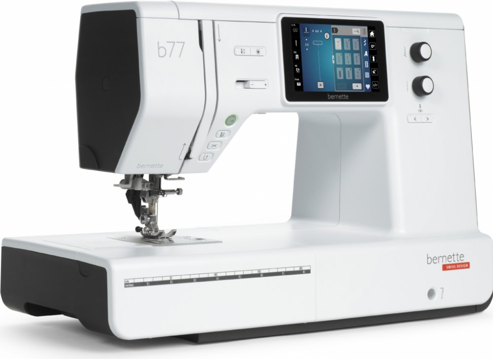 Šicí stroj Bernette b77 je nejnovějším šicím a quiltovacím strojem od značky Bernette. Jedná se o elektronický šicí stroj s barevným dotykovým LCD displejem, na kterém lze nastavovat přítlak patky a napětí horní nitě. Stroj je osazen horizontálním rotačním chapačem a je vybaven 500 šicími programy, 3 typy abecedy, 17 typy knoflíkové dírky, disponuje také funkcemi jako je automatický odstřih nitě, ...