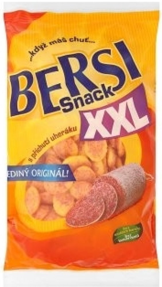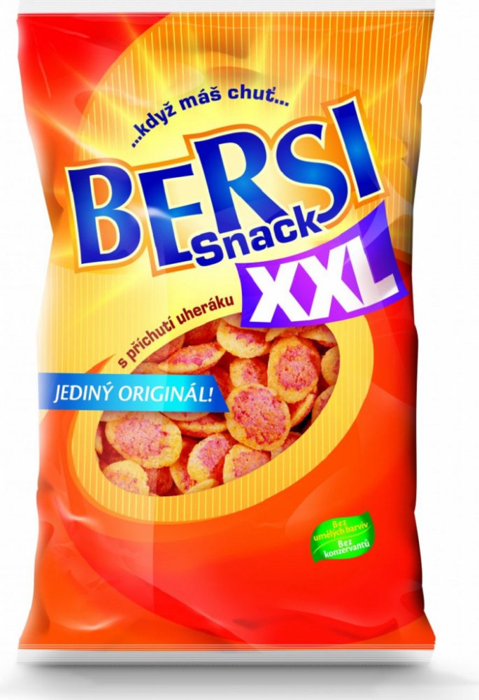 Bez umělých barviv, Bez konzervantů, Jediný originál!, Vychutnejte si požitek z jedinečné a stálé chuti snacků Bersi, které se dosahuje splněním náročných požadavků na pečlivý výběr surovin a jejich následné přípravě při využití těch nejmodernějších technologií.Když máš chuť...Bersi Snack.Ochutnejte také:Arašídy v těstíčku hořčiceArašídy v těstíčku sýrArašídy v těstíčku s příchutí bramborákArašídy v těstíčku pikantWasabi arašídy v těstíčkua další..., Snack s příchutí uheráku - extrudovaný výrobek,