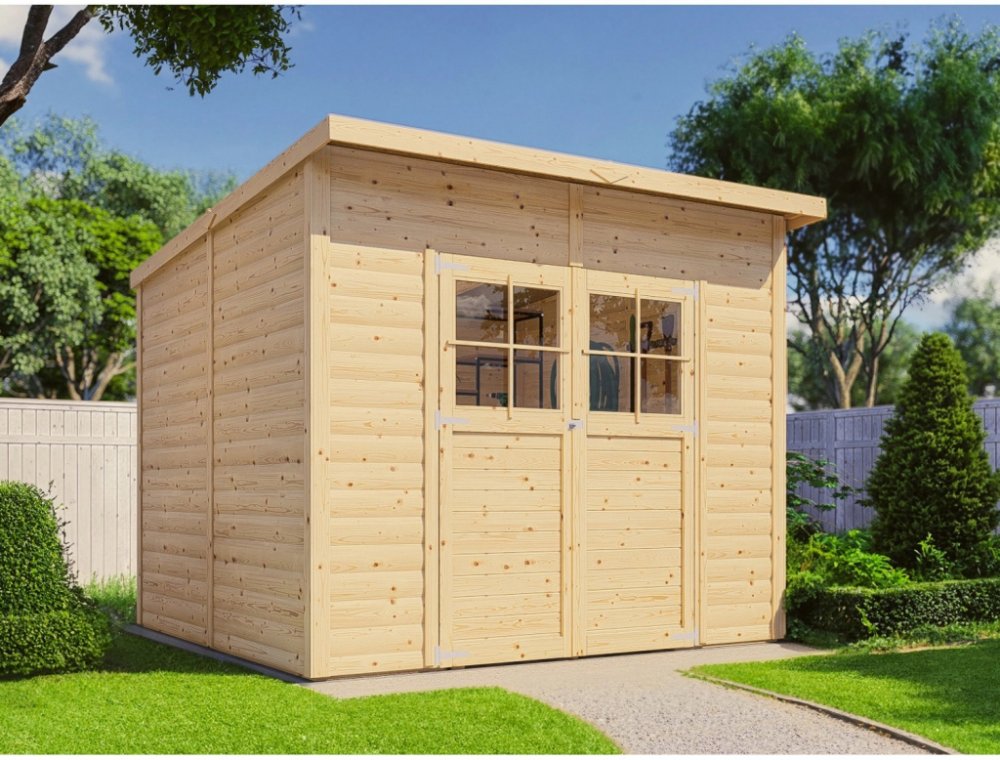 Pokud jste si mysleli, že montáž zahradního domku je složitá, zdlouhavá a drahá, montovaný dům od Bertile vás vyvede z omylu. Dům z prefabrikovaných prvků se snadno montuje, nevyžaduje žádné speciální dovednosti a navíc máte možnost strávit pár hodin na čerstvém vzduchu s přáteli a rodinou. Výhody: - Střecha je montovatelná oboustranně - se sklonem dopředu nebo dozadu - Všechny díly jsou kompletně prefabrikované - není potřeba žádné řezání nebo šroubování jednotlivých stěnových desek - Atraktivní design dřeva Součástí balení je: - Kompletní sada (bez střešní lepenky) - Podlaha (bez základnových hranolů) Technické parametry: - Rozměry stěny bez přesahu střechy: 244 x 239 cm - Podlahová plocha: 5,64 m2 - Max. výška hřebene: 211 cm - Min. výška hřebene: 190 cm - Objem: 10,93 m3 - Tloušťka stěny: 19 mm - Plocha stěny: 16,5 m2 - Tloušťka střechy: 12 mm MFP-P5 - Plocha střechy: 6,3 m2 - Sklon střechy: 4,1° - Zatížení sněhem: 0,85 kN/m2 - Rozměry otvoru dveří: 131 x 165 cm Základy Nejdůležitějším předpokladem pro správnou stavbu zahradního přístřešku je přesně vyrovnaný základ. Pro provedení základu je rozhodující stav podloží. Mezi základem a podlahou by měla být zajištěna cirkulace vzduchu, aby se zabránilo podmáčení pod zahradním domkem. Ošetření ochranou dřeva Všechny neošetřené prvky z masivního dřeva by měly být ošetřeny impregnací na dřevo, aby se zabránilo poškození, jako je změna barvy a hniloba dřeva způsobená povětrnostními vlivy a vlhkostí. Dřevěný základnový rám zahradního domku je nutné před pokládkou ošetřit impregnací dřeva pro styk se zemí. Důrazně se doporučuje používat pásy nebo podložky vyrobené z pryžových granulí, aby se zabránilo přímému kontaktu s půdní vlhkostí. Základnové hranoly ani pryžové podložky nejsou součástí balení. Střešní krytina Střecha je vyrobená z multifunkčních panelů (MFP) tloušťky 12 mm a kategorie P5 (odolnost proti vlhkosti). V zájmu ochrany životního prostředí v Bertilo zcela upustili od střešní lepenky pro počáteční krytí a od začátku roku 2025 již není střešní lepenka zahrnuta v rozsahu dodávky. Pro pultové střechy doporučujeme použít komerčně dostupná osvědčená řešení jako bitumenové pásy (KSK fólie) nebo EPDM fólie v různých provedeních. Vhodnou střešní krytinu nejdete na e-shopu v kategorii Střešní krytiny, na marketu požádejte o radu svého prodejce. Doporučené spojení prvků Jako doplňkovou ochranu proti vnikání vlhkosti se doporučuje při montáži chránit spoje rámů prvků vhodným silikonem. Před přišroubováním se na rám prvku, který má být připevněn, jednoduše nanese proužek silikonu. Instalace oken Aby se zabránilo pronikání vlhkosti a aby bylo zajištěno pevné spojení skla s rámem a zasklívacími lištami, měl by být před montáží na okraje skla aplikován silikon. CERTIFIKACE FSC Společnost Baltic Connexions OÜ vyrábějící pod značkou Bertilo vyrábí své produkty z materiálů nesoucích certifikaci FSC (Forest Stewardship Council). Značka FSC označuje produkty ze dřeva pocházejícího z ekologicky a sociálně udržitelných lesů.