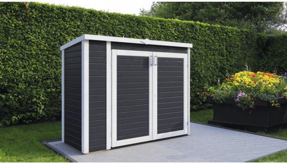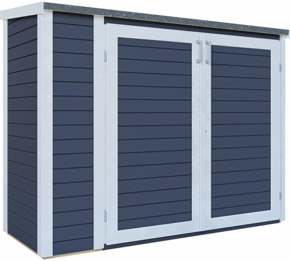 Zahradní skříň Bertilo Multibox 3 v antracitové barvě 200 x 82 cm představuje kvalitní a univerzální úložné řešení pro malý prostor. Díky širokým dvoukřídlým dveřím s rámem ze spárovky (barvené varianty jsou ošetřeny na obou stranách) se zde dají snadno umístit i velké předměty. Laminovaná zárubeň je vybavena malým cylindrickým zámkem. Střechu lze naklápět dopředu i dozadu. Všechny varianty řady multiboxů lze vzájemně libovolně kombinovat. Zahradní skříň je šetrná ke zdrojům a vyrobená z jednoletého severského smrku s certifikátem FSC. Zemní rám zahradního domku je nutné před pokládkou ošetřit impregnací dřeva pro styk se zemí. Důrazně se doporučuje používat pásy nebo podložky vyrobené z pryžových granulí, aby se zabránilo přímému kontaktu s půdní vlhkostí. Všechny neošetřené prvky z masivního dřeva by měly být ošetřeny impregnací na dřevo, aby se zabránilo poškození, jako je změna barvy a hniloba dřeva způsobené povětrnostními vlivy a vlhkostí. Jednoduchá montáž díky modulární konstrukci prvků Osvědčená a velmi stabilní konstrukce prvků umožňuje snadné a rychlé postavení. Veškeré dřevěné prvky jsou přesně prefabrikované. Rozměry balení: 163 x 78 x 41 cm Střešní krytina V zájmu ochrany životního prostředí v Bertilo zcela upustili od střešní lepenky pro počáteční krytí a od začátku roku 2025 již není střešní lepenka zahrnuta v rozsahu dodávky. Pro pultové střechy doporučujeme použít komerčně dostupná osvědčená řešení jako bitumenové pásy (KSK fólie) nebo EPDM fólie v různých provedeních. Vhodnou střešní krytinu nejdete na e-shopu v kategorii Střešní krytiny, na marketu požádejte o radu svého prodejce. Součást balení - Kompletní stavebnice - Střešní a podlahové prvky z masivního dřeva s rámem - Veškerá kování a upevňovací díly Další informace naleznete v datovém listu výrobku. Technické parametry: Rozměr stěny (š x d) bez přesahu střechy: 200 x 82 cm Objem: 2,3 m3 Plocha podlahy: 1.6 m2 Maximální výška hřebene: 163 cm Tloušťka stěny: 14 mm Plocha stěn: 5,8 m2 Tloušťka střechy: 12 mm MFP-P5 Plocha střechy: 1,8 m2 Sklon střechy: 5,9° Zatížení sněhem: 0,85 kN/m2 Rozměr dveří: 151 x 141 cm