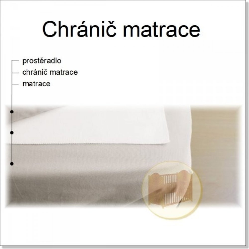Chránič matrace je vyroben z vysoce kvalitní bavlny se speciálně přidanou voděodolnou membránou. Chrániče předcházejí množení roztočů a bakterií a jsou nepromokavé. Chrání matraci před ušpiněním, vlhkostí (vodní párou, potem, ..). Zaručují bezpečné a pohodlné spaní. Chránič je antialergický, velmi jemný a příjemný pro pokožku. Zabraňuje tvoření opruzenin. Teplota praní 90°, nepoužívat aviváž. Chránič se nasazuje na matrací pomocí postranních silných gum, které jsou umístěny v rozích chrániče.