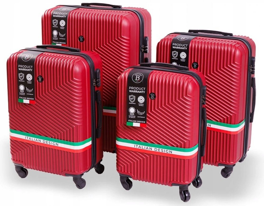 Cestovní kufry Milano od naší značky BERTOO jsou navrženy italským designovým studiem. Jsou určeny pro náročné zákazníky, kteří ocení jedinečný italský design spojený s vynikající kvalitou. Kufry jsou vyrobeny z odolného ABS plastu. Papírové visačky a pásky s trikolórou jsou součástí balení kufru a prvotního designu. Visačky a pásek s trikolórou snadno od kufru odděláte před prvním použití. Sada cestovních kufrů Milano se skládá ze 4 kusů. Kufr disponuje 4 otočnými kolečky, kolečka je dobré oddělat při manipulaci do letadlového prostoru na zavazadla a podobná místa, kde by se kolečka mohly cizí vinou poškodit. Uvnitř kufru se nachází stylová podšívka s logem BERTOO, dvě komory a síťovaná kapsa na zip. Další výhodou jsou ochranné nohy, které umožňují položení kufru bez rizika jeho poškození. Díky poréznímu povrchu pláště je minimalizováno riziko vzniku škrábanců. Rukojeť kufru s dvoustupňovou regulací je zakončena madlem s neoprenovou úpravou, díky které je přenášení zavazadla pohodlnější. O ochranu obsahu Vašeho zavazadla se postará kódový zámek, na kterém si jednoduše nastavíte vlastní bezpečnou kombinaci. Navíc nabízíme výměnu tohoto zámku za TSA zámek, který Vaše zavazadlo ochrání před zničením v případě letištní kontroly. odolný materiál ABS 4 otočné odnímatelné kolečka, kufr je určen pro manipulaci na všech 4 kolečkách! uvnitř kufru stylová podšívka s logem BERTOO, síťovaná kapsa na zip a elastické popruhy pro upevnění oblečení a předmětů ochranné nožičky, které umožňují položení kufru bez rizika poškození kombinovaný zámek součástí boční rukojeť horní rukojeť výsuvná teleskopická rukojeť