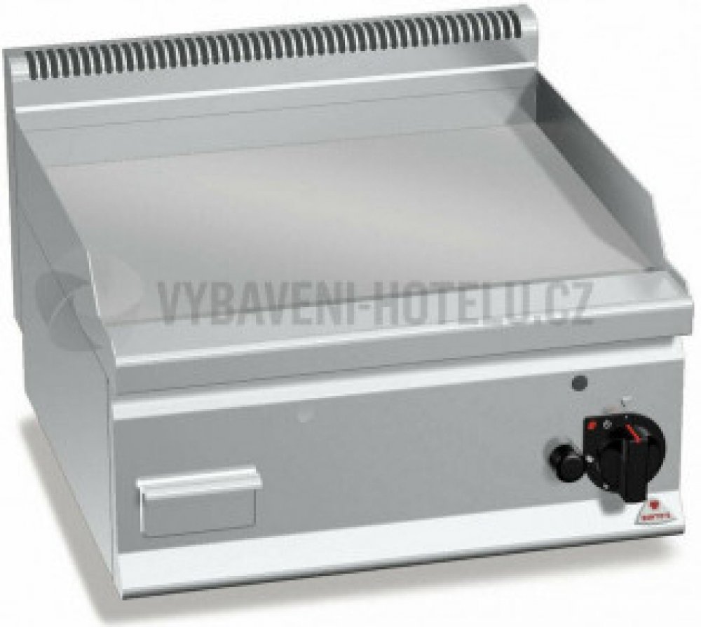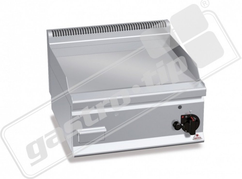 Termostatický ventil 30 až 300°C pro přesnou a bezpečnou regulaci. Termočlánek a chráněný zápalný plamínek. Deska hladká s vrstvou tvrdého chromu jež usnadňuje čistění, zvýšené postranní lemy. Kompletní sortiment plynových a elektrických ploten s různým provedením grilovací plochy. Lze na nich připravovat pokrmy tzv. "kontaktem" a to nejcitlivějším způsobem. Jenotný systém distribuce tepla zaručuje rovnoměrné grilování po celé pracovní ploše. Při grilování se přirozeně tvoří zbytkový olej, který je odváděn a shromažďován ve velké odpadní nádobce.