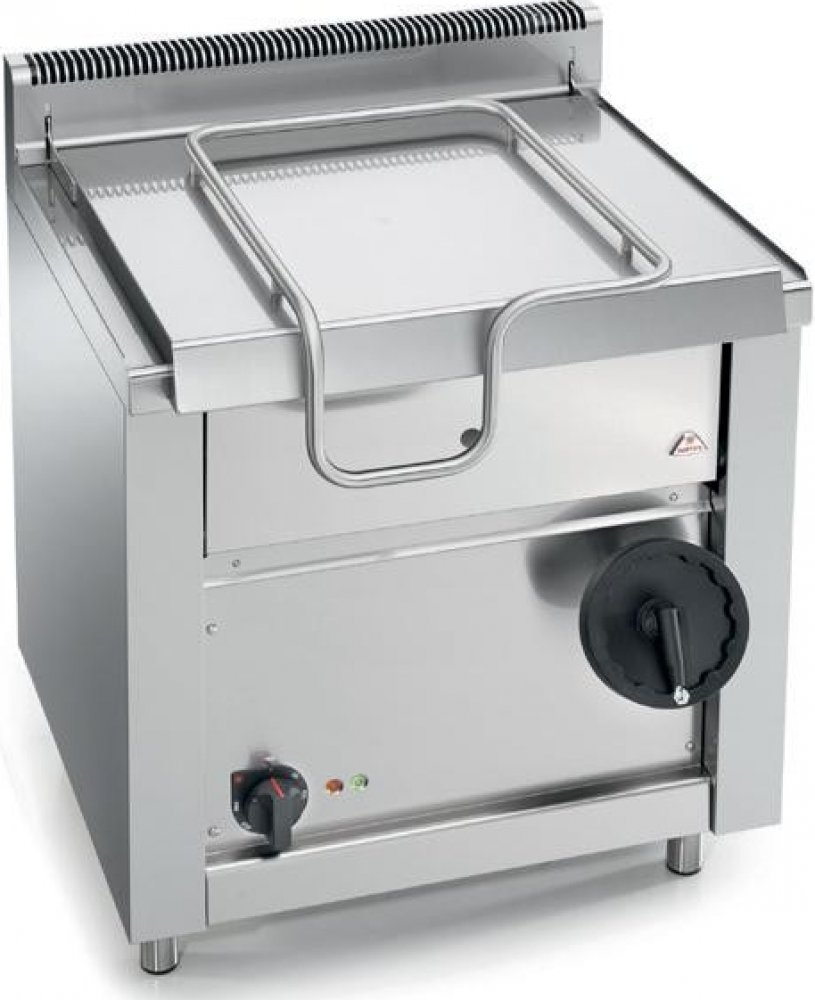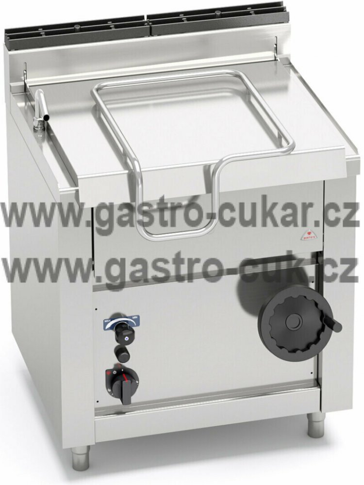 Plynová smažící pánev. Manuální vyklápění masivní nerezové vany, obsah 60 lt se speciálním fixačním systémem a vyklápěním do 80°. Pánev Bertos je vybavena bezpečnostním mikrospínačem pro zastavení chodu při změně polohy vany a dále bezpečnostním termos Plynová smažící pánev. Manuální vyklápění masivní nerezové vany, obsah 60 lt se speciálním fixačním systémem a vyklápěním do 80°. Pánev Bertos je vybavena bezpečnostním mikrospínačem pro zastavení chodu při změně polohy vany a dále bezpečnostním termostatem s mechanickým restartem.