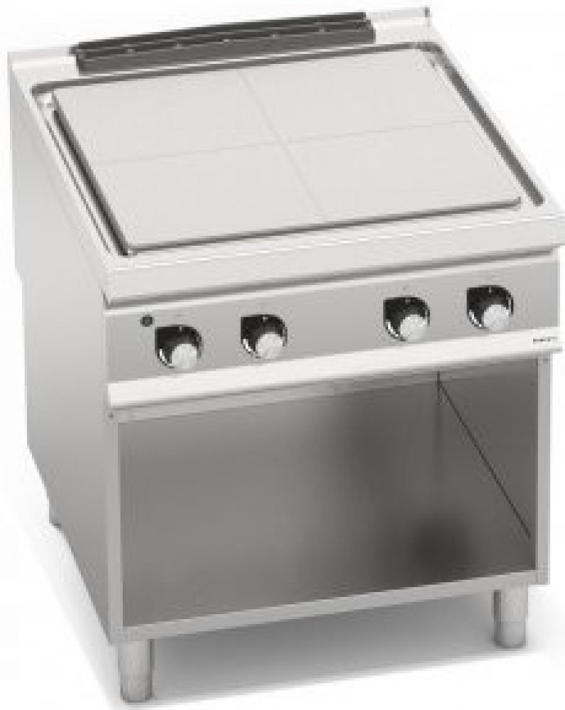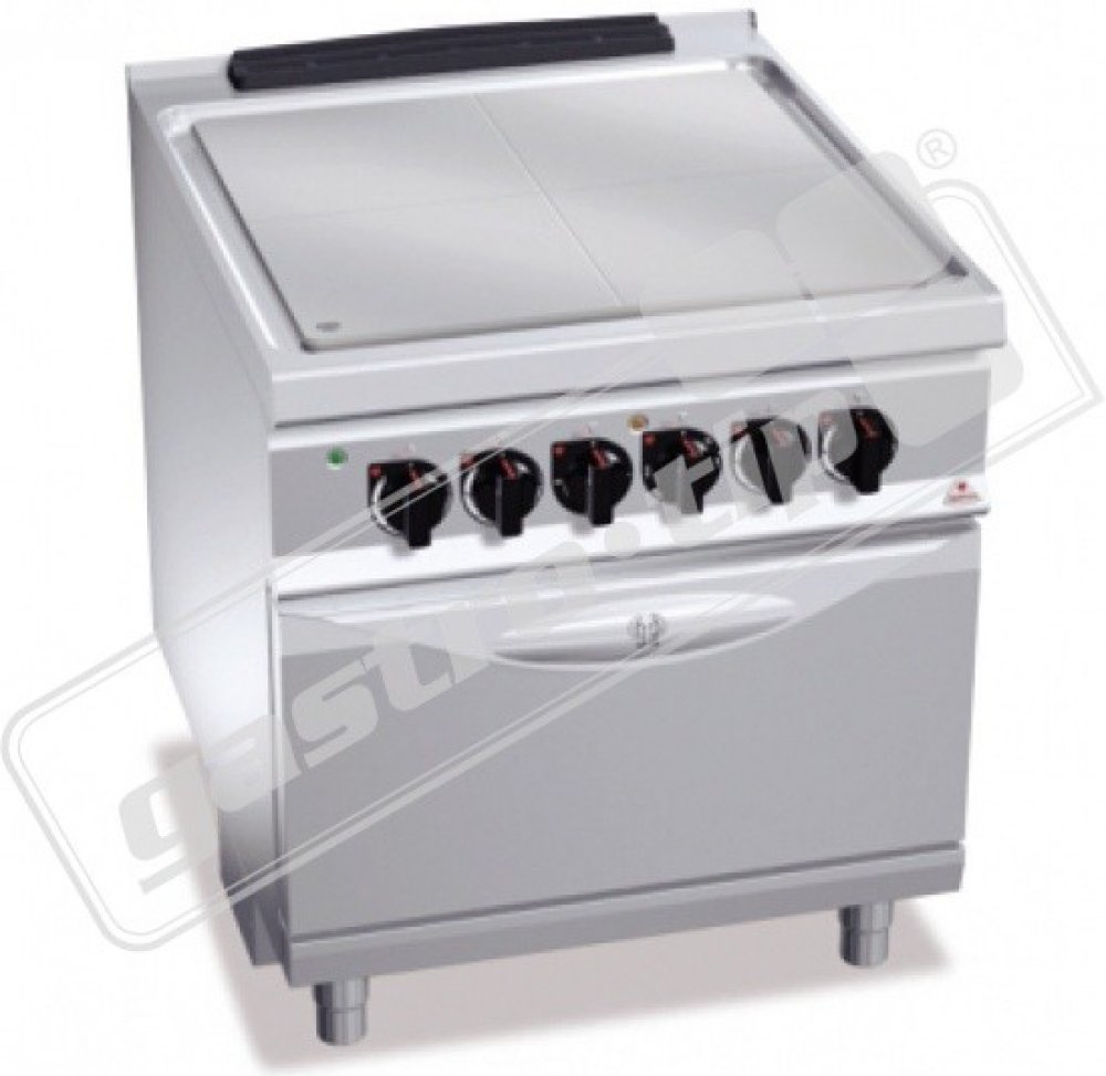 Elektrický tálový sporák s topnými tělesy o výkonu 3,5kW rovnoměrně rozloženými do čtyř zón. Nedělená varná plocha. Plynulá regulace jednotlivých zón s kontrolkou chodu. Kompaktní provedení s výkonnou elektrickou horkovzdušnou troubou GN 2/1.
