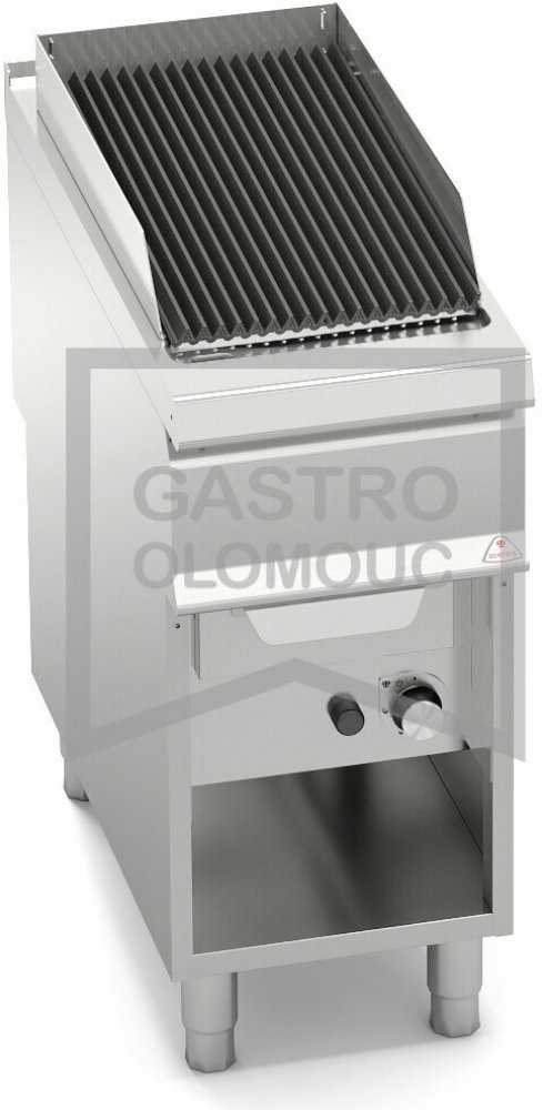 Plynový vodní gril Bertos SG9WG40M. Ohřev plynového vodního grilu je zajištěn dvojitým trubkovým hořákem z nerezové oceli s optimalizovaným spalováním, bezpečnostním ventilem, termočlánek a chráněný zápalný plamínek. Regulace teploty ventilem s horní a dolní pozicí. Nádrž na vodu pod varnou zónou, vyrobená z nerezové oceli se zaoblenými hranami a výpustným otvorem.