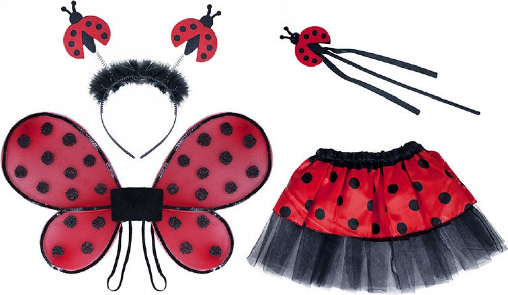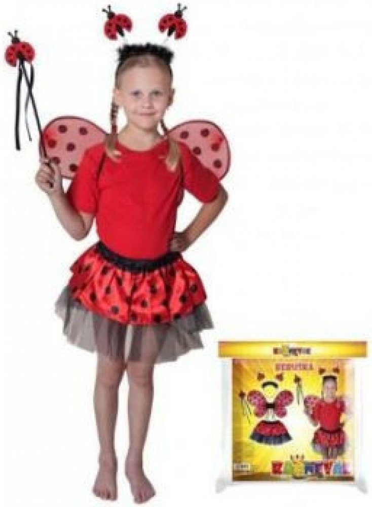 Roztomilý karnevalový kostým s motivem berušky je určen pro holčičky ve věkovém rozmezí 3-10 let. Tento kostýmek má červenou sukničku s puntíky, která je doplněna černou tylovou spodničkou. Dále obsah