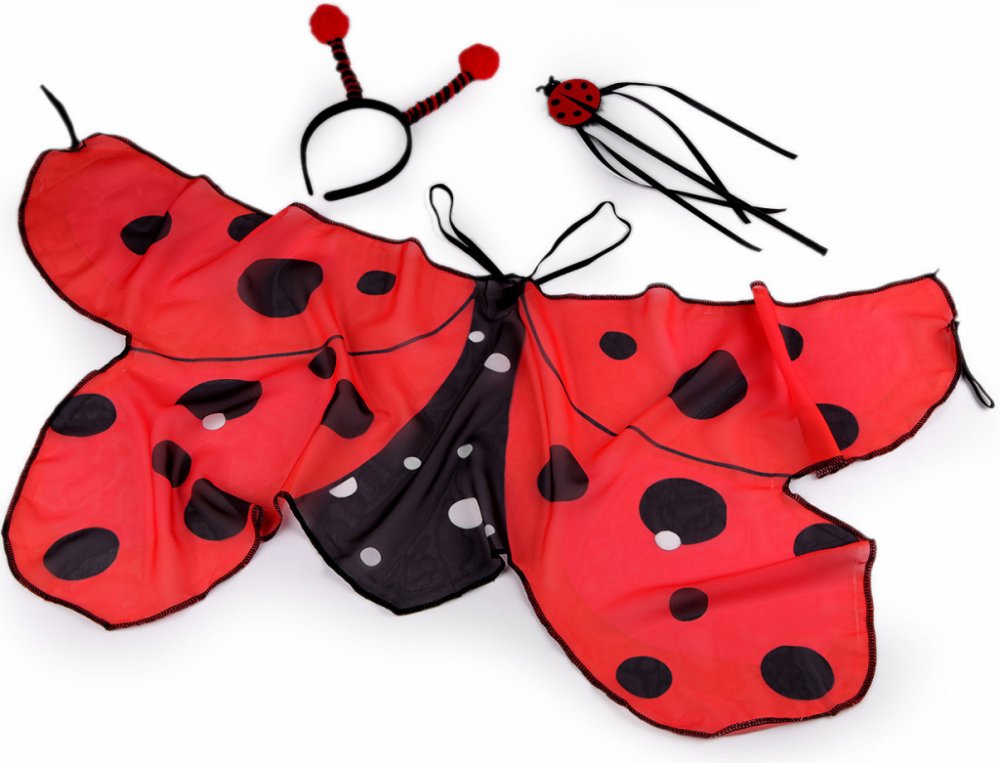 Kostým berušky promění vaše dítko v toto roztomilé stvoření na jakémkoliv karnevalu, oslavě i při dětských hrách. Skládá se z šifónových nevyztužených křídel, hůlky a čelenky s tykadly. Křídla se nasazují pomocí gumiček přes ramena a pak se natáhnou podél rukou, kde se opět uchytí gumičkami.