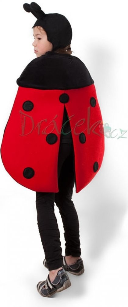 Karnevalový kostým Beruška vznikl na zakázku pro naše děti a myslím, že se hodně povedl. Skládá se z čepičky na hlavu a křídel. Čepička je celobavlněná a křídla jsou z měkkého postřiženého froté. Křídla mají formu "perelýnky" a navlékají se přes hlavu. Na ramenou drží díky širokému límci a jsou dobře vyřešena tak, že je kostým věkově univerzální. Foceno na sedmileté modelce, ale kostým je pro věkovou kategorii 3 roky a výše. Menší děti budou mít křídla dlouhá, větší pak kratší, ale bude sedět dobře po dlouhou dobu. Rozhodně dítě přestane na karnevaly dříve chodit, než odroste z tohoto kostýmu. V případě potřeby lze použít i pro dospělého, otvor pro hlavu je dostatečně velký. Dospělý nasadí i čepičku, akorát nedopne suchý zip pod bradou. Pro děti přeškolního i školního věku bude kostým sedět perfektně. Modelka má na sobě černou mikinu a legíny, které nejsou součástí kostýmu, ale vystačíte si např. s tmavými či červenými punčocháčky a tričkem. Délka pelerínky je 65cm.