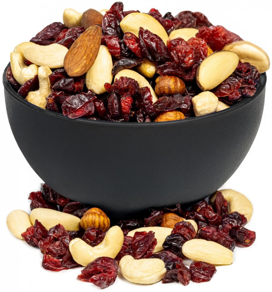 Vyvážená kombinace křupavých ořechů a sladkokyselých brusinekBery Jones Směs ořechů s brusinkami je dokonale vyváženou kombinací křupavých ořechů a jemně sladkokyselých sušených brusinek, která potěší vaše chuťové pohárky. Pečlivě vybraná jádra mandlí, lískových, kešu a para ořechů přinášejí bohatou chuť. Klikva velkoplodá, známá svou výraznou sladkokyselou chutí, dodává směsi osvěžující ovocný ná...