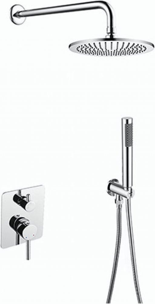• podomítkový sprchový komplet • směšovací páková baterie • přepínač funkcí • 1-funkční hlavová sprchovací hlavice ø 200 mm, tl. 13 mm • stěnový vývod pro hlavovou sprchovací hlavici 360 mm • 1-funkční ruční sprcha • stěnový vývod s držákem ruční sprchy • sprchová hadice PVC, délka 1500 mm • připojovací závity G 1/2"