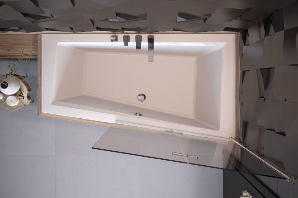 Asymetrická akrylátová vana Besco INTIMA 190x90 cm je vyrobená z kvalitního 100% sanitárního akrylátu s příjemným lesklým povrchem, který usnadňuje běžnou údržbu. Všechny akrylátové vany mají trvalou barvu, vysokou pevnost a dlouhou životnost. TECHNICKÉ PARAMETRY: Výrobce: Besco Délka (mm): 1600 Šířka (mm): 900 Výška bez nožiček (mm): 415 Objem (l): 168 Průměr odpadu (mm): 52 Materiál: Sanitární akrylát Barva: bílá Provedení: pravé / Levé Hmotnost brutto (kg): 20 Vanu dodáváme v rozměrech: 150×85 cm, 160×90 cm s možností doplnění o krycí panely.Foto je ilustrativní, podhlavníky a armatury nejsou součástí, vana je dodávána bez otvorů pro baterie.