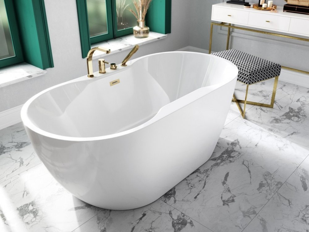 BESCO Volně stojící vana NAVIA bílá Barva Bílá, Barva sifonu Zlatá, Rozměr vany 140 × 80 VANNAVIA140Z