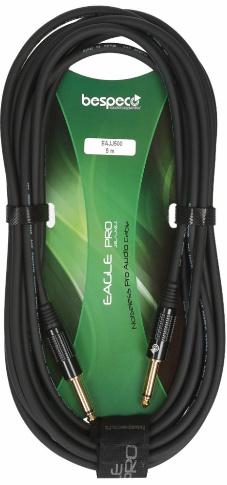 Tento nástrojový kabel ze série Bespeco Eagle Pro disponuje vodičem z 98% bezkyslíkaté mědi (OFC) a vnitřním polovodivým PVC pláštěm, díky němuž neprodukuje žádný šum. Ke kvalitě zvuku přispívá i spirálové stínění na více jak 92 procentech vodiče nebo pozlacené jacky s hliníkovým tělem. Samozřejmostí je odolné a zároveň flexibilní opláštění z PVC a vulkanizovaného silikonu.