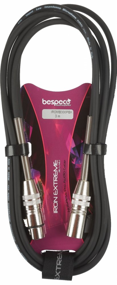 Tento mikrofonní kabel ze série Bespeco Iron Extreme disponuje vodičem z 98% bezkyslíkaté mědi (OFC) a vnitřním polovodivým PVC pláštěm, díky němuž neprodukuje žádný šum. Ke kvalitě zvuku přispívá i spirálové stínění na více jak 92 procentech vodiče nebo pozlacené konektory s kovovým tělem. Samozřejmostí je odolné a zároveň flexibilní opláštění z PVC a vulkanizovaného silikonu.