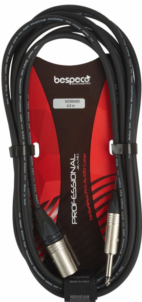 Kvalitní kabel XLR (male) - jack (mono). Tento nástrojový kabel ze série Bespeco Professional disponuje vodičem z 99% bezkyslíkaté mědi (OFC) a vnitřním polovodivým PVC pláštěm, díky němuž neprodukuje žádný šum. Ke kvalitě zvuku přispívá i spirálové stínění na více jak 94 procentech vodiče nebo špičkové konektory renomované značky Neutrik s celokovovým tělem. Samozřejmostí je odolné a zároveň flexibilní opláštění z PVC a vulkanizovaného silikonu.