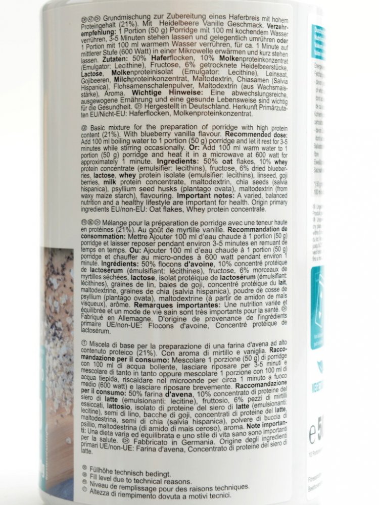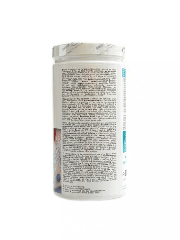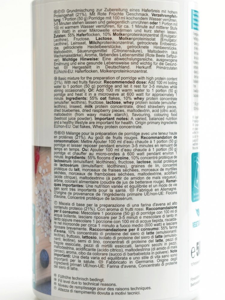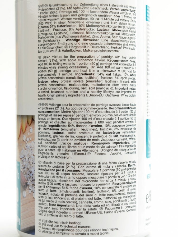Vysoce kvalitní ovesné vločky, syrovátkový protein a mléčný protein zajišťují vysoký obsah bílkovin v kaši. Chutné kousky ovoce dotvářejí chuťový zážitek.