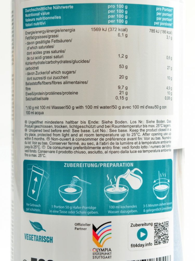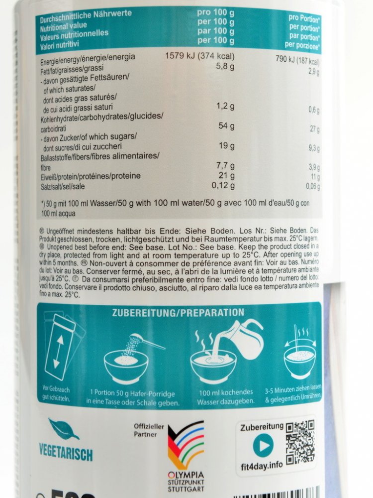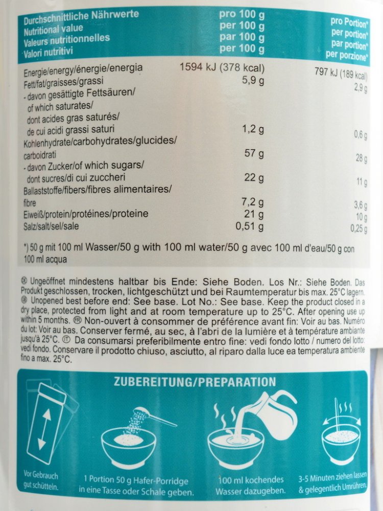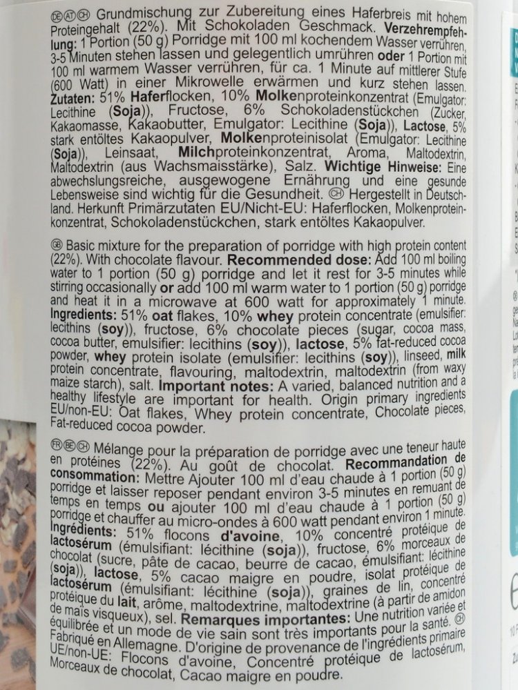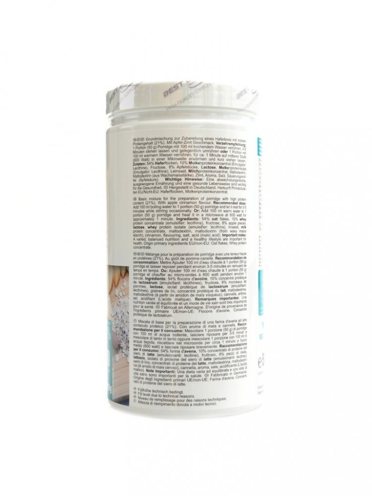 Vysoce kvalitní ovesné vločky, syrovátkový protein a mléčný protein zajišťují vysoký obsah bílkovin v kaši. Chutné kousky ovoce dotvářejí chuťový zážitek.