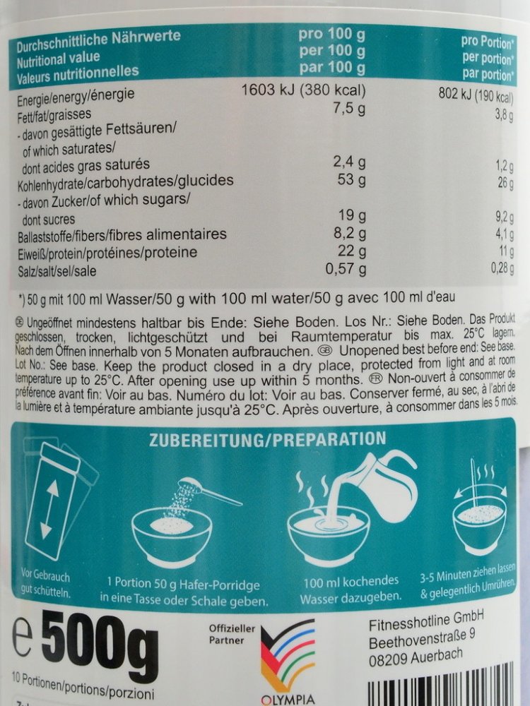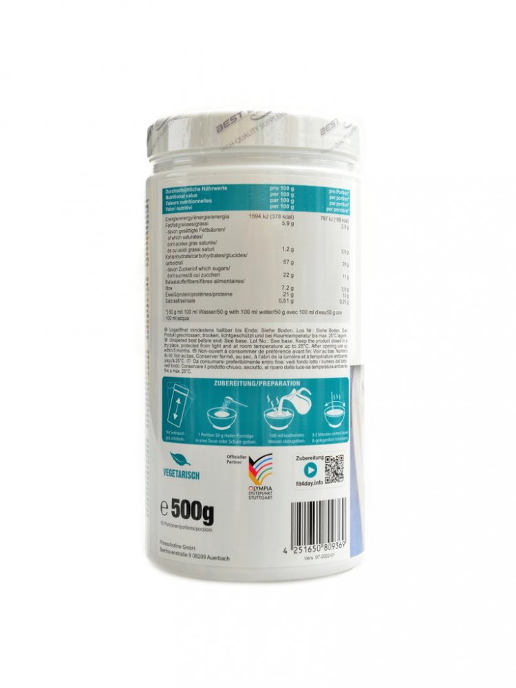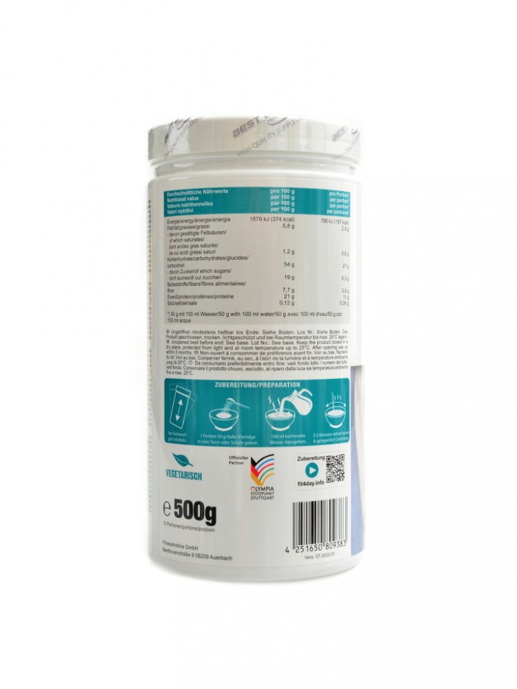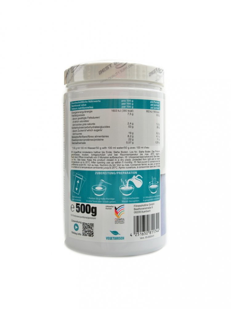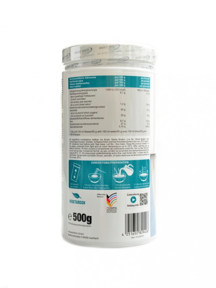 Best Body Nutrition 500 se středním obsahem bílkovin s vysokým obsahem cukru v prášku – jednorázové sáčky 189.0 kcal 3.6 g Ovesné vločky, syrovátkový protein, fruktóza 10 ks oves
