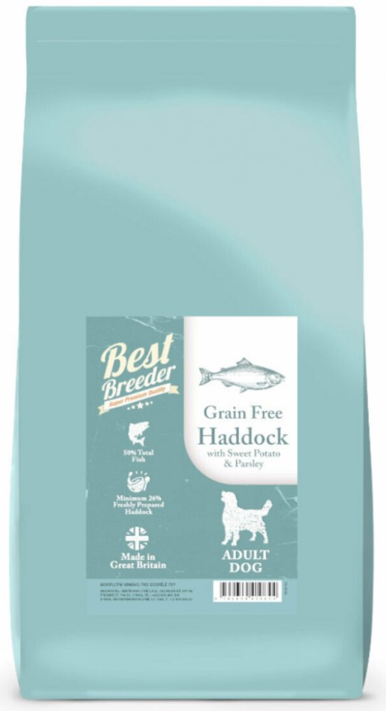Máte doma trávožrouta? Nebo spíš masožravce? Uhaste jeho touhu po čerstvém mase parádní porcí čerstvé tresky, lososa vonícím po Atlantském oceánu, čerstvou petrželkou a kapkami pstružího oleje na krásnou srst. Váš masožravec by si tuhle baštu vybral. A vy mu přece nechcete upírat nic, co by ho udělalo šťastným. Špičkové krmivo Best Breeder s porcí tresky provoněné čerstvou petrželí pro dospělé psy Čerstvá treska, sušený losos a kapka pstružího oleje – bílkovinová bomba, která vyživuje svaly vašeho psího sportovce a udělá z něj pořádného siláka. FOS a MOS bojují s bakteriemi ve střevech, a vy se tak nemusíte bát, že by spokojený život vašeho pejska omezovala zácpa nebo průjem. Věděli jste, že petržel patří mezi superpotraviny? Odplaví všechny škodlivé látky z těla vašeho chlupáče a granule budou díky ní vonět jako oběd od babičky. Zdraví psů je pro nás na prvním místě, proto nepoužíváme žádná chemická barviva, konzervanty, umělá dochucovadla a jiné chemické koktejly. Jsme důkazem toho, že kvalitní krmivo lze vyrobit z čistě přírodních surovin. O tom, že Best Breederu na zdraví vašich domácích mazlíčků opravdu záleží, svědčí i to, že do všech produktů přidávají čistě přírodní konzervanty v podobě tuku, tokeferolu a rozmarýnu. Velikost: 2kg, 12kg, 2x 12kg