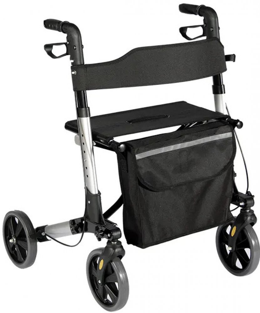 Elegantní šedo-černé provedení zajišťuje, že chodítko působí nenápadně a stylově v každém prostředí. Je navrženo tak, aby se hodilo jak do interiéru, tak do venkovních prostor.