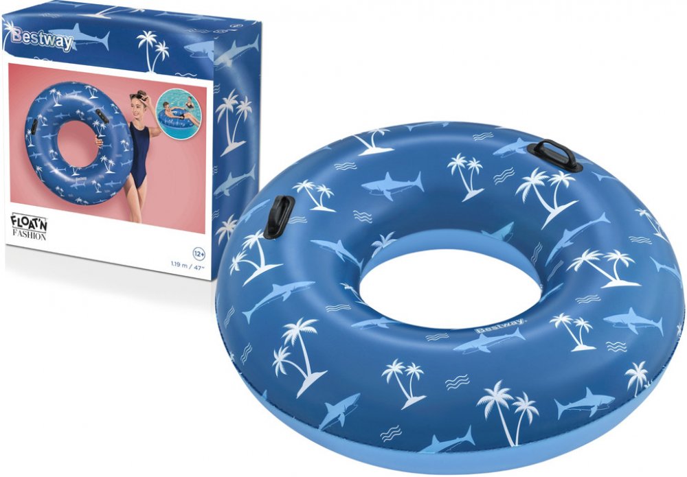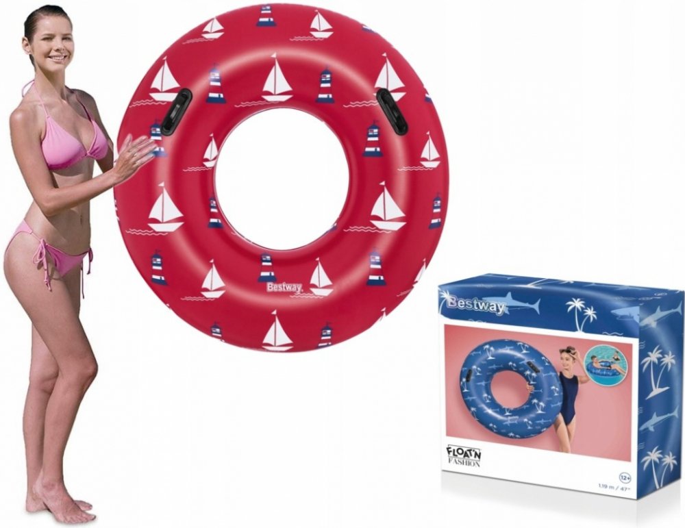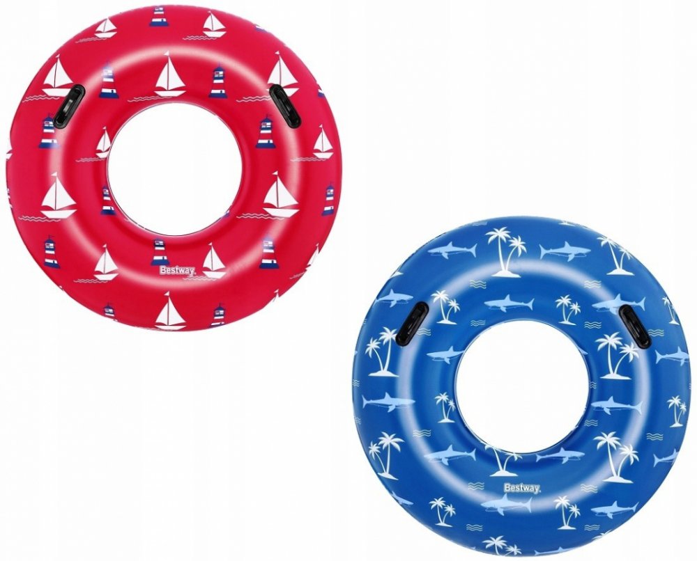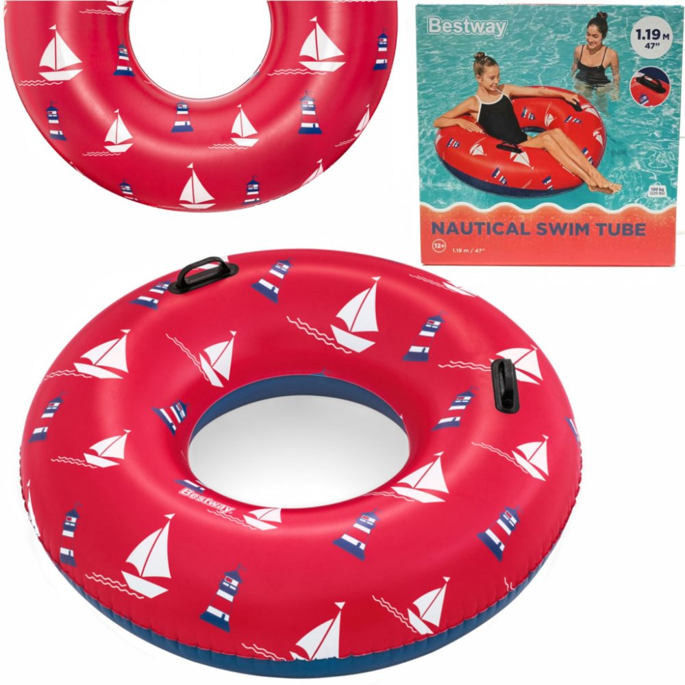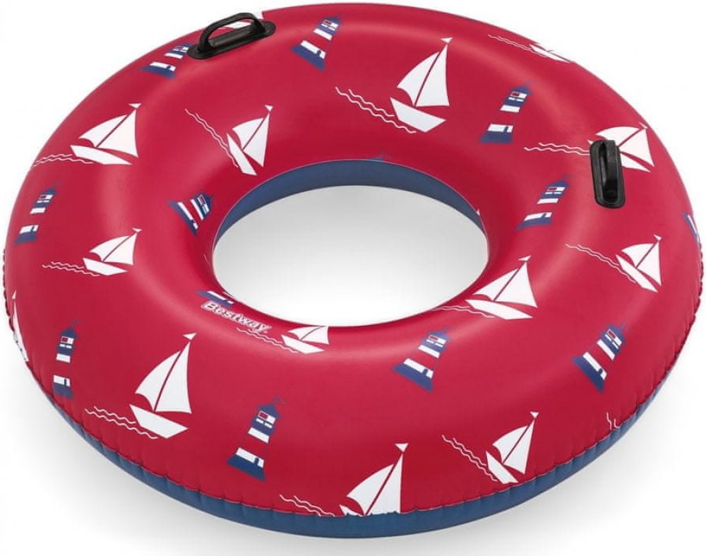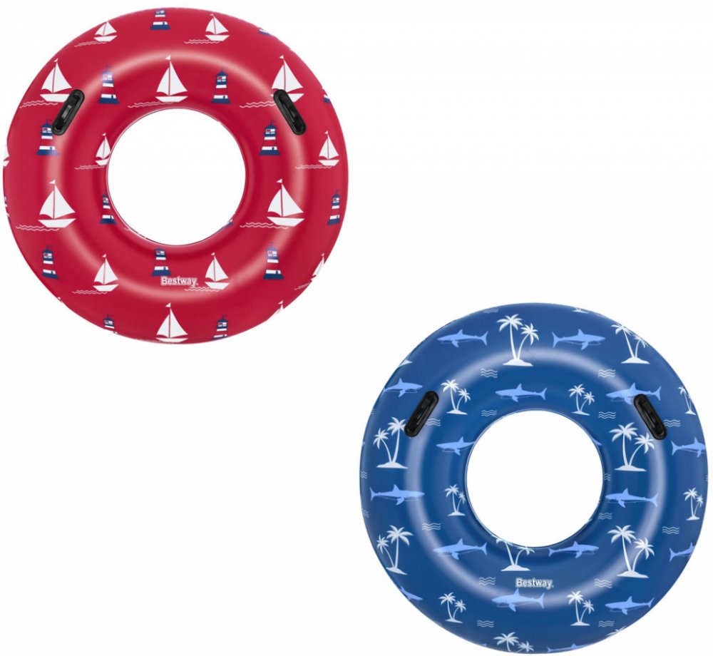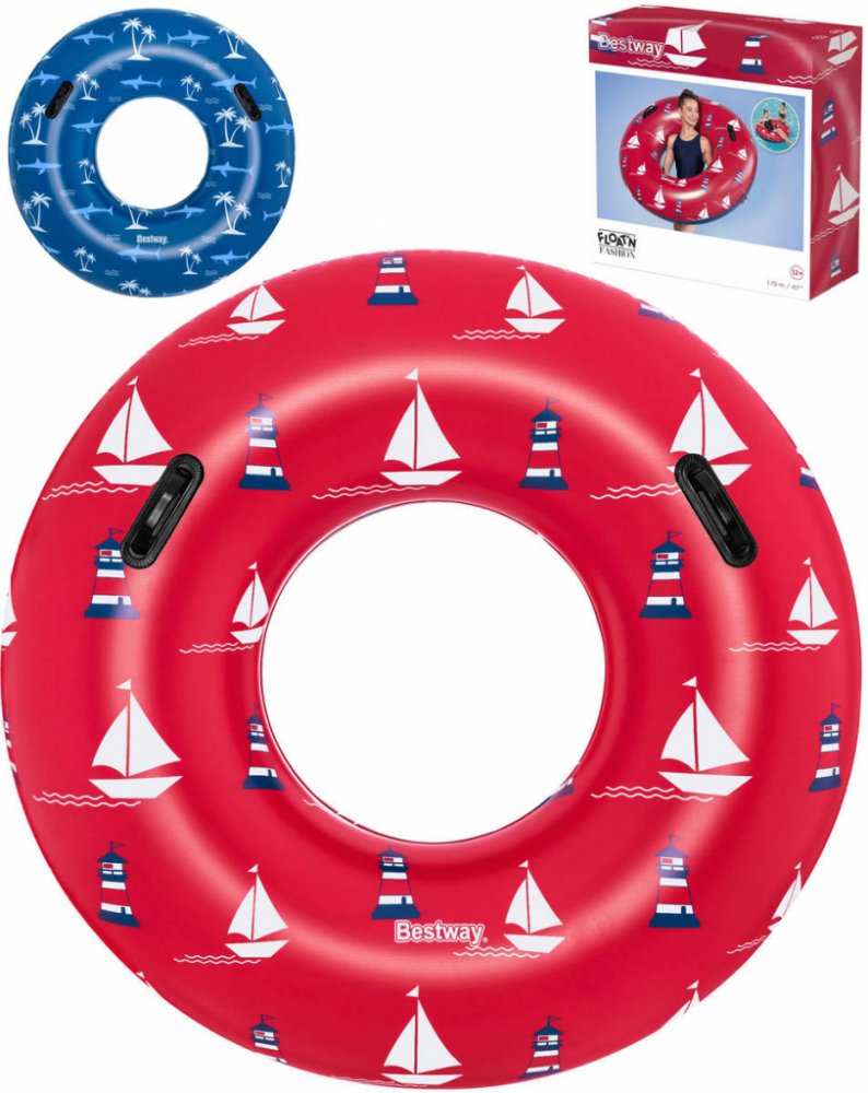 BESTWAY 36353 Nafukovací kruh s držadly (plavací kolo) Nautical 119cm. Vyrobeno z odolného PVC, 1 vzduchová komora, 2 madla, 2 varianty provedení.