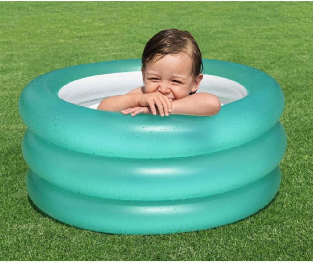 Představujeme Vám tří kruhový bazének pro miminka. Bazének má nafukovací podlážku pro větší pohodlí dětí v bazénku. Během horkých, letních dní ocení každé dítě ochlazení ve vodě a zároveň si užije spousta zábavy. Bazének je ideální volbou na letošní dovolené u vody - u moře, na pláží či u rybníka. Certifikace CE.