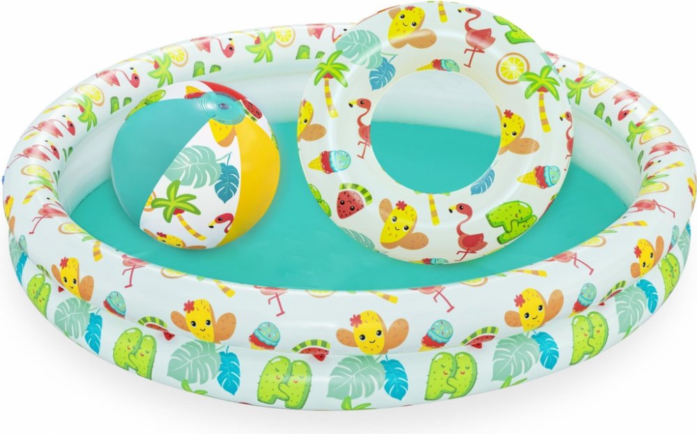 Bazén + míč + kolo = fantastická sada na hraní ve vodě. Může být něco lepšího? Samozřejmě - když je navíc sada vybavena rozkošnou grafikou. A to je dobře, protože tahle je přesně taková! .