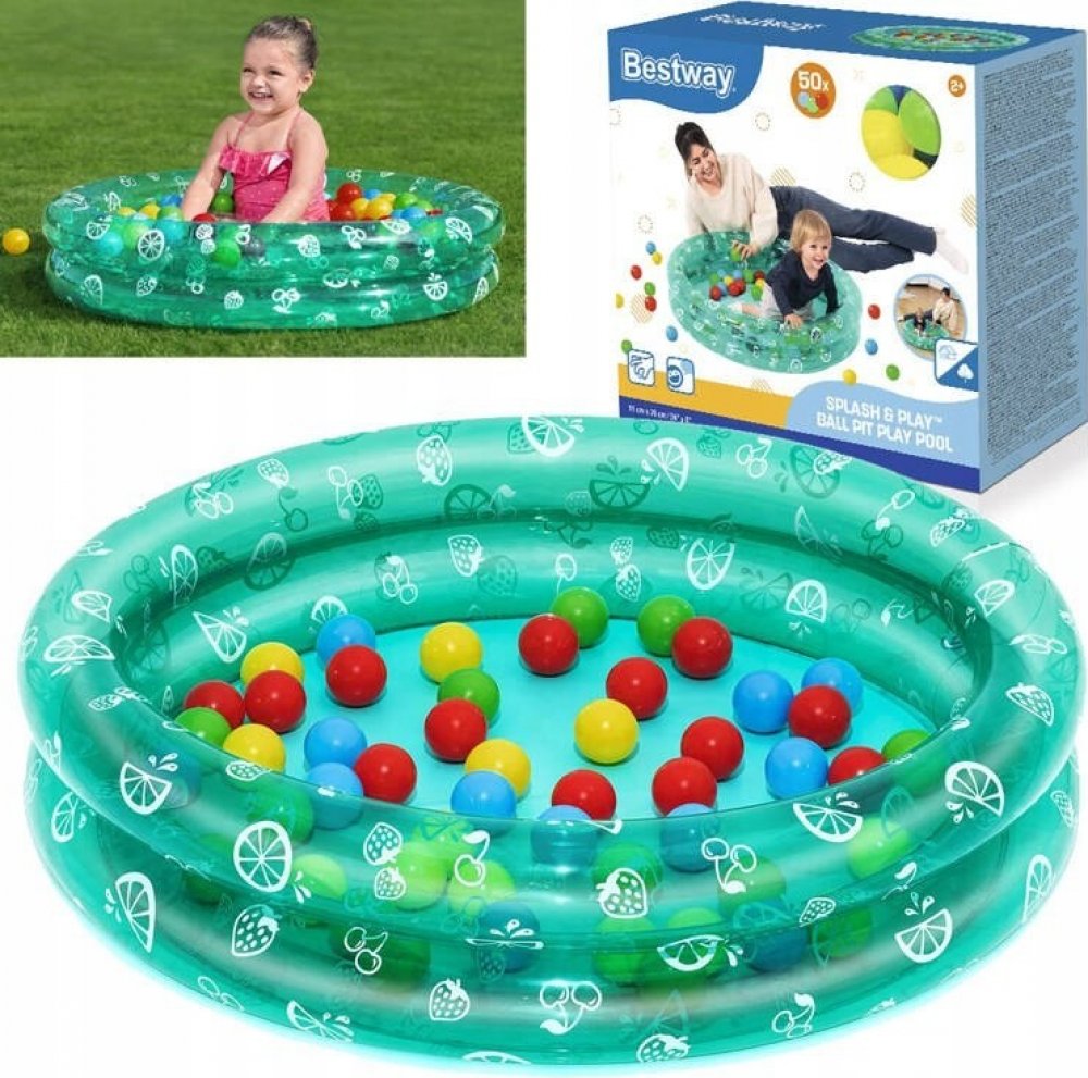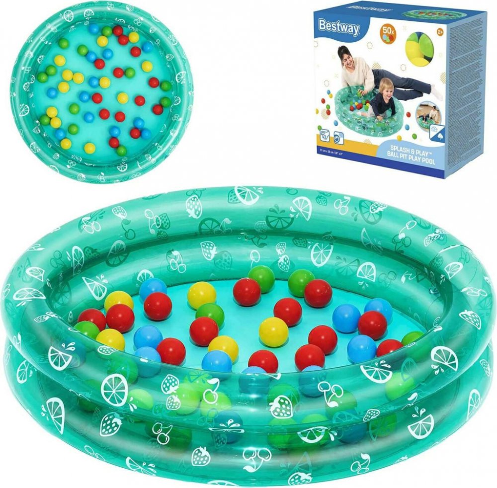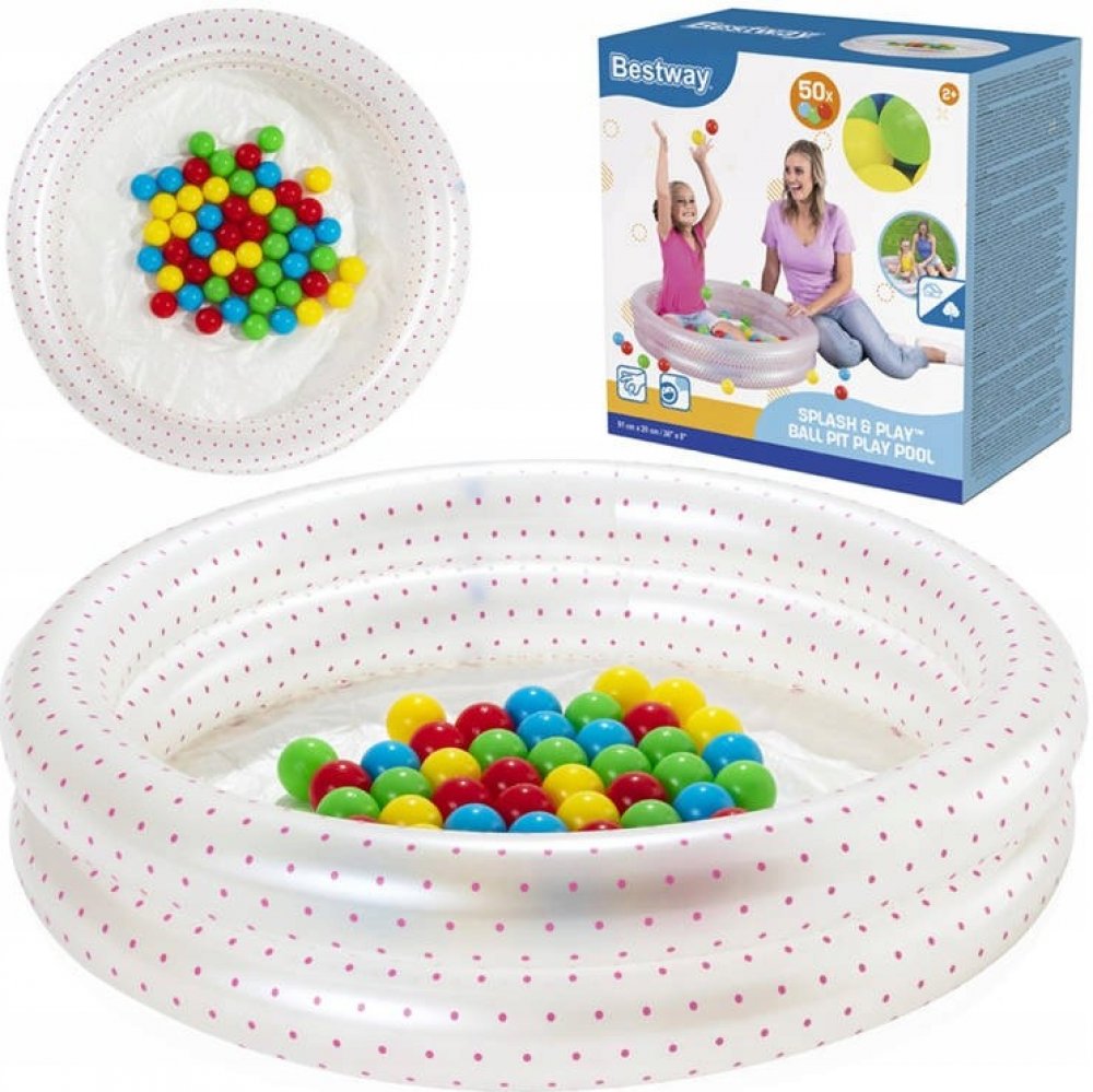 - součástí balení je 50 míčků pro další zábavu a potěšení vašeho dítěte. ROZMĚRY: 91 x 20 cm (měřeno před nafouknutím) Bazén je skvělý uvnitř domu, na koberci, ale i venku na trávě, písku ...atd. Děti si hraní v bazénu opravdu užívají.Brouzdaliště je určeno pro děti od 2 let. splňuje všechny bezpečnostní normy.Snadno se sestavuje a přepravuje. Upozornění: Tento výrobek je určen pouze pro domácí použití a pod dohledem dospělých. Jako licencovaný distributor výrobků Bestway poskytuje Jokomisiada nový, originálně zabalený výrobek se zárukou výrobce.