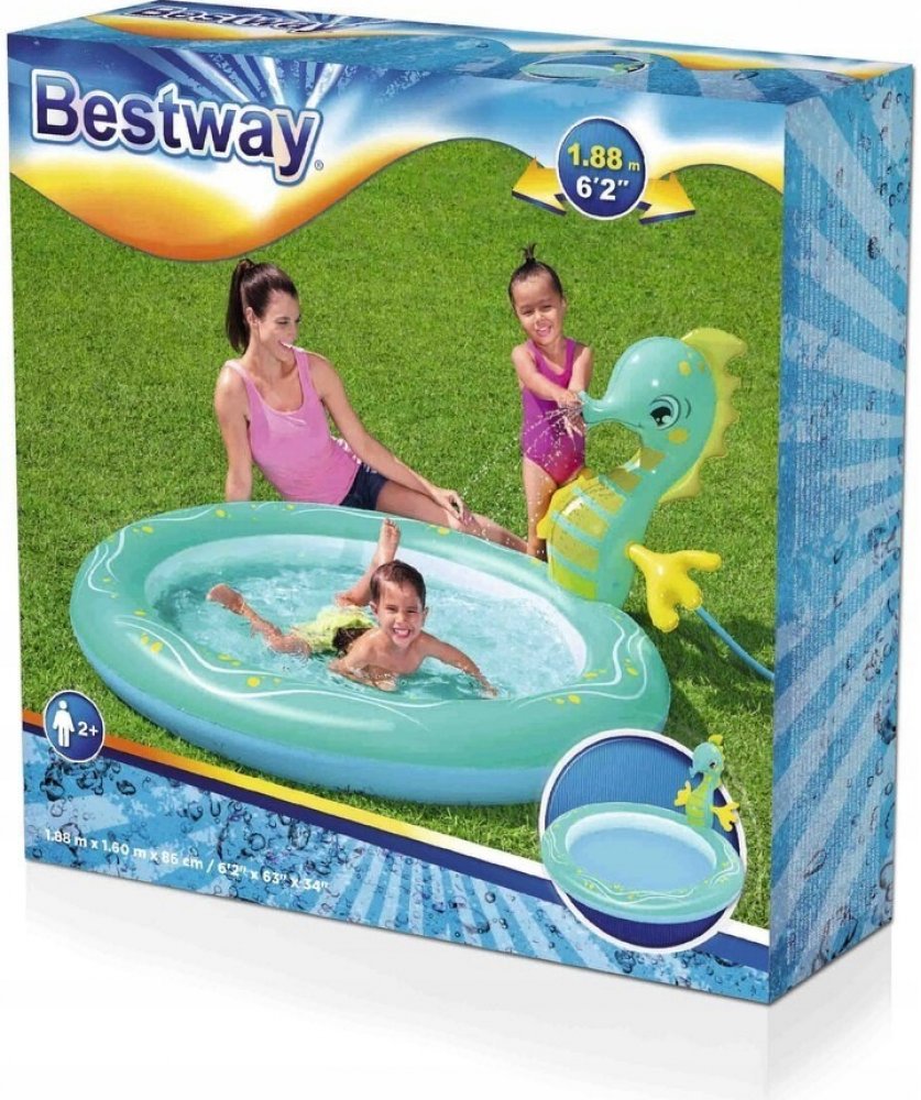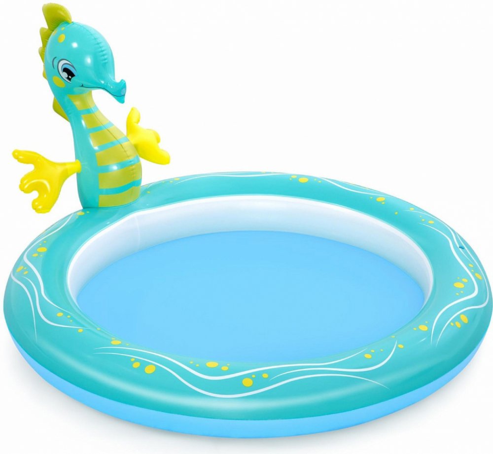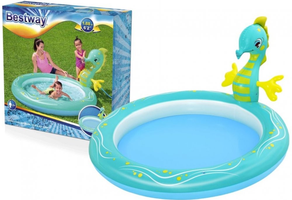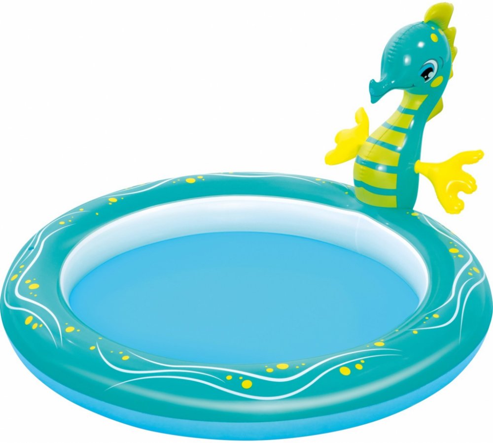 Chcete svému dítěti dopřát nezapomenutelnou zábavu v pohodlí vaší zahrady? Nafukovací hřiště vám umožní proměnit ji ve skutečné centrum zábavy pro vaše dítě. Bazének s vodní fontánou vaše dítě jistě potěší a stane se jeho oblíbeným místem ke hře. Bazén je vyroben z měkkého, ale odolného materiálu a je maximálně bezpečný pro nejmenší děti. Hlavní atrakcí je mořský koník, ze kterého po připojení na zahradní hadici vytéká voda.