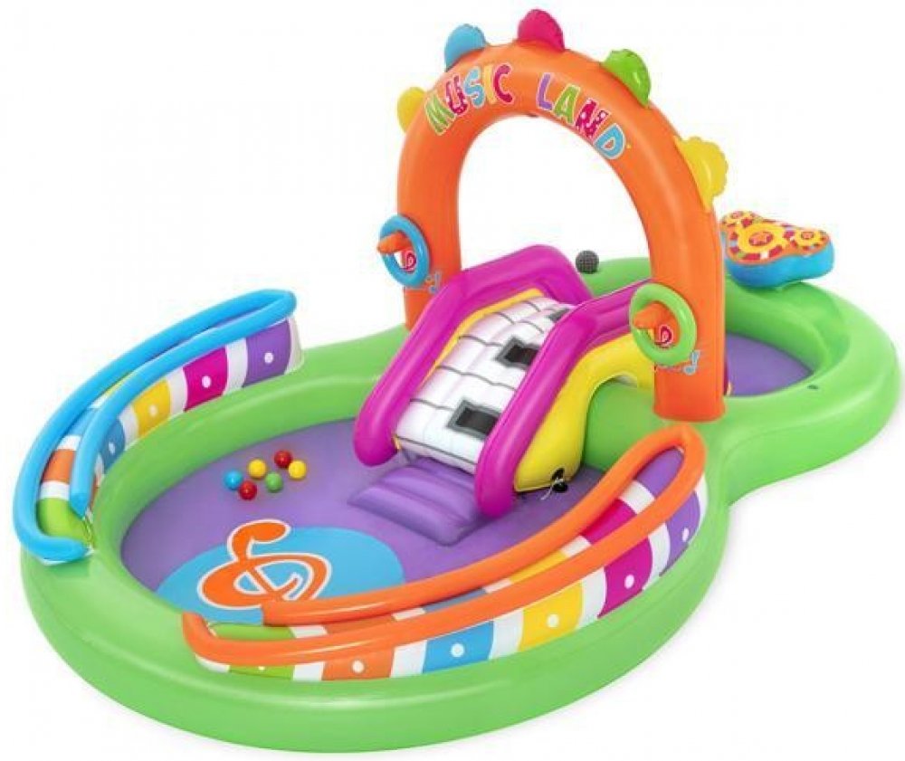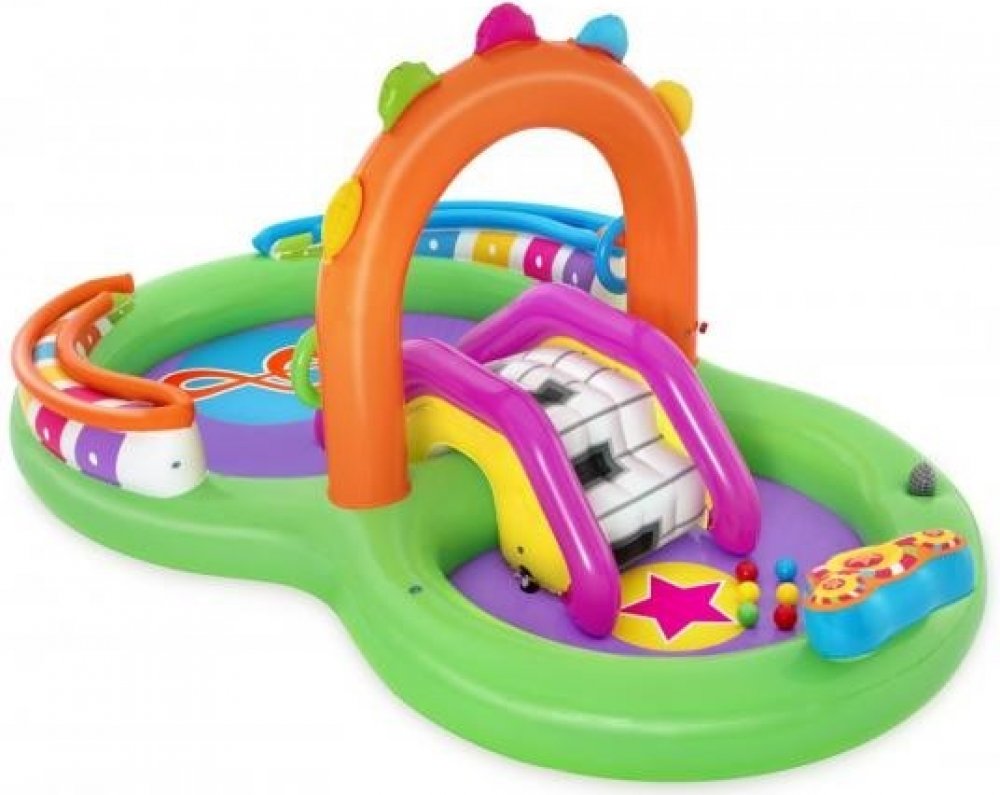 Nafukovací skluzavka, dva bazénky, nafukovací mikrofon a sprcha v DISCOLANDU. To vše malým dětem nabízí toto hrací vodní centrum. Skvělý nafukovací bazének vhodný pro děti od 2 let s maximální nosností 45 kg. • Vodní dětské centrum s motivem hudby zajistí dětem osvěžení v letních parných dnech a zároveň je učí jemné motorice. Dětský nafukovací bazének na zahradu můžete využít i jako suché hrací ce...