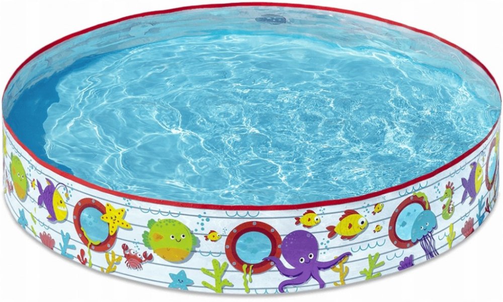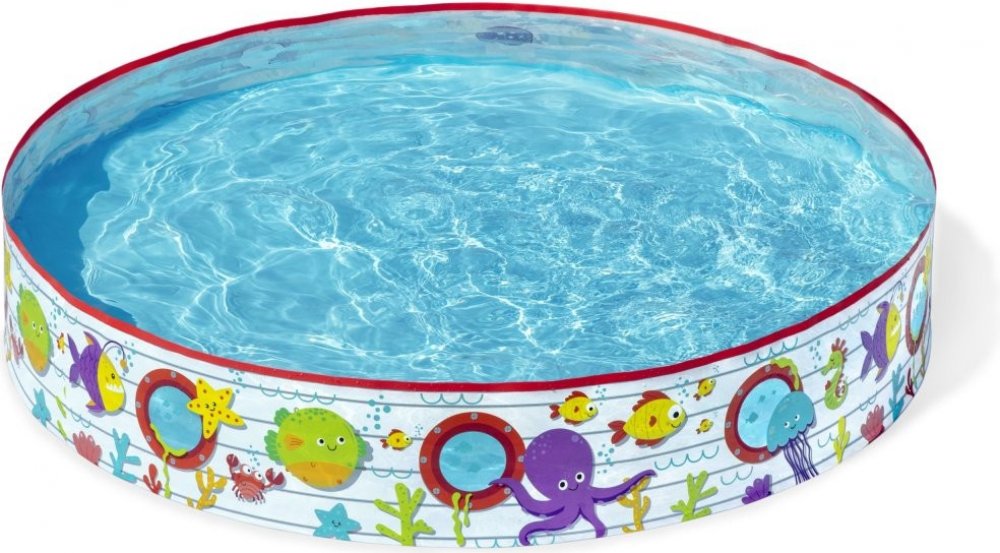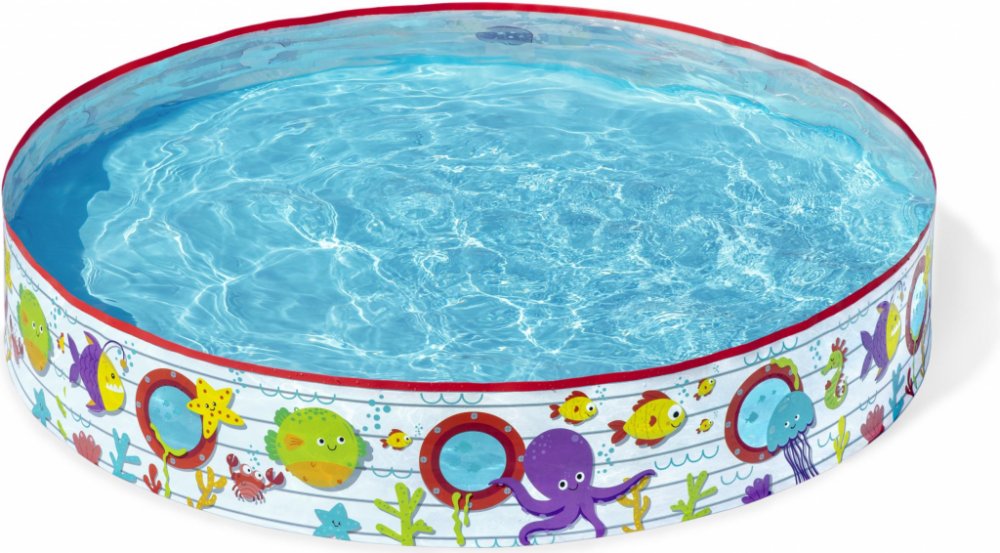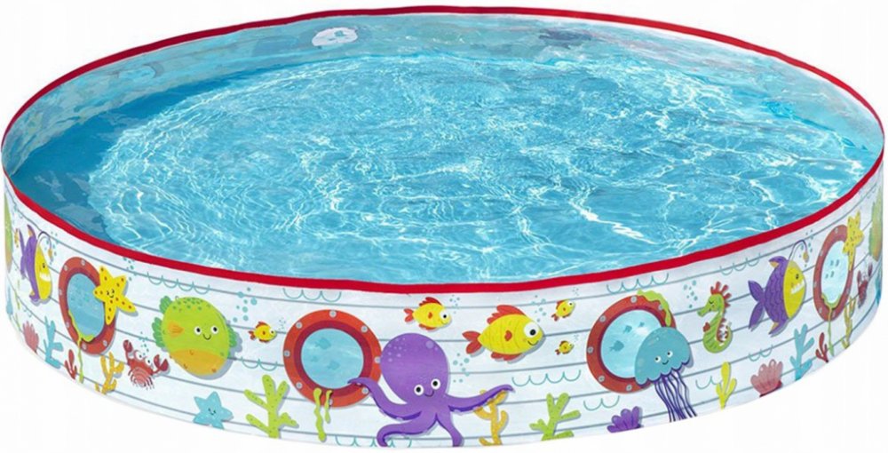 Kulatý samostojný bazén pro děti, s motivem mořského světa, s originálními okénky po stranách.