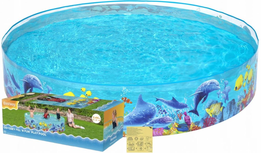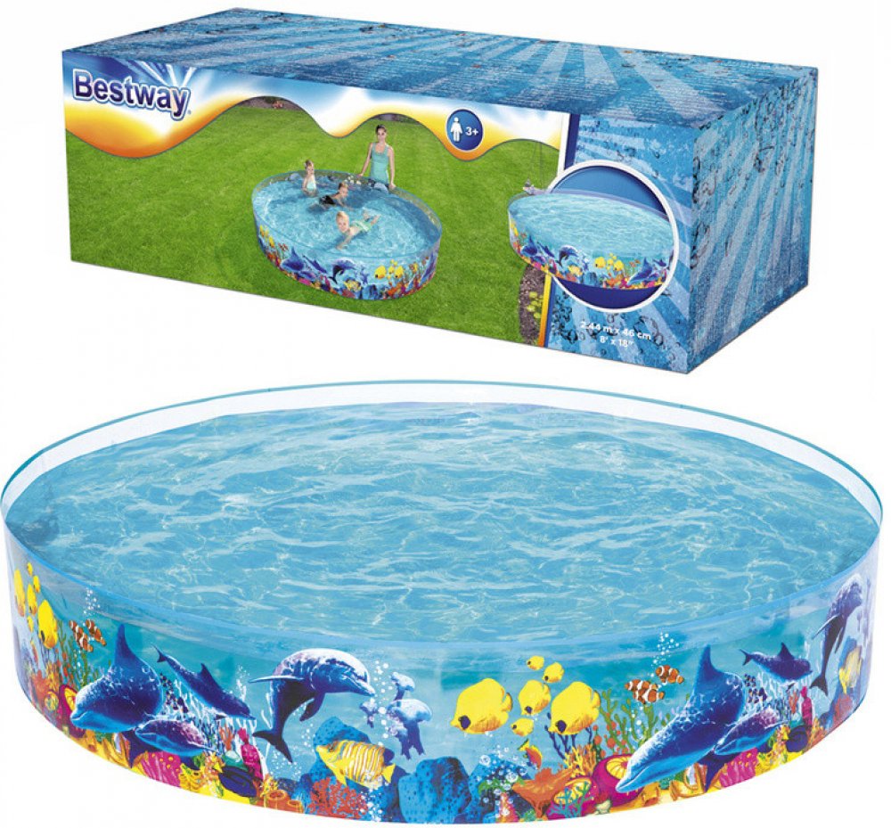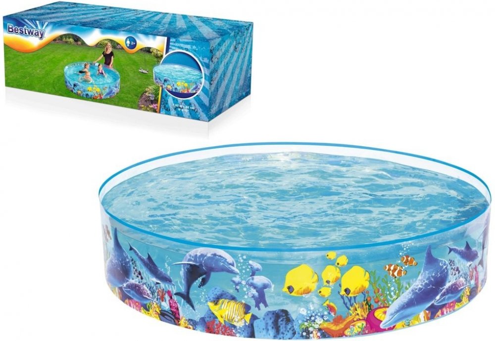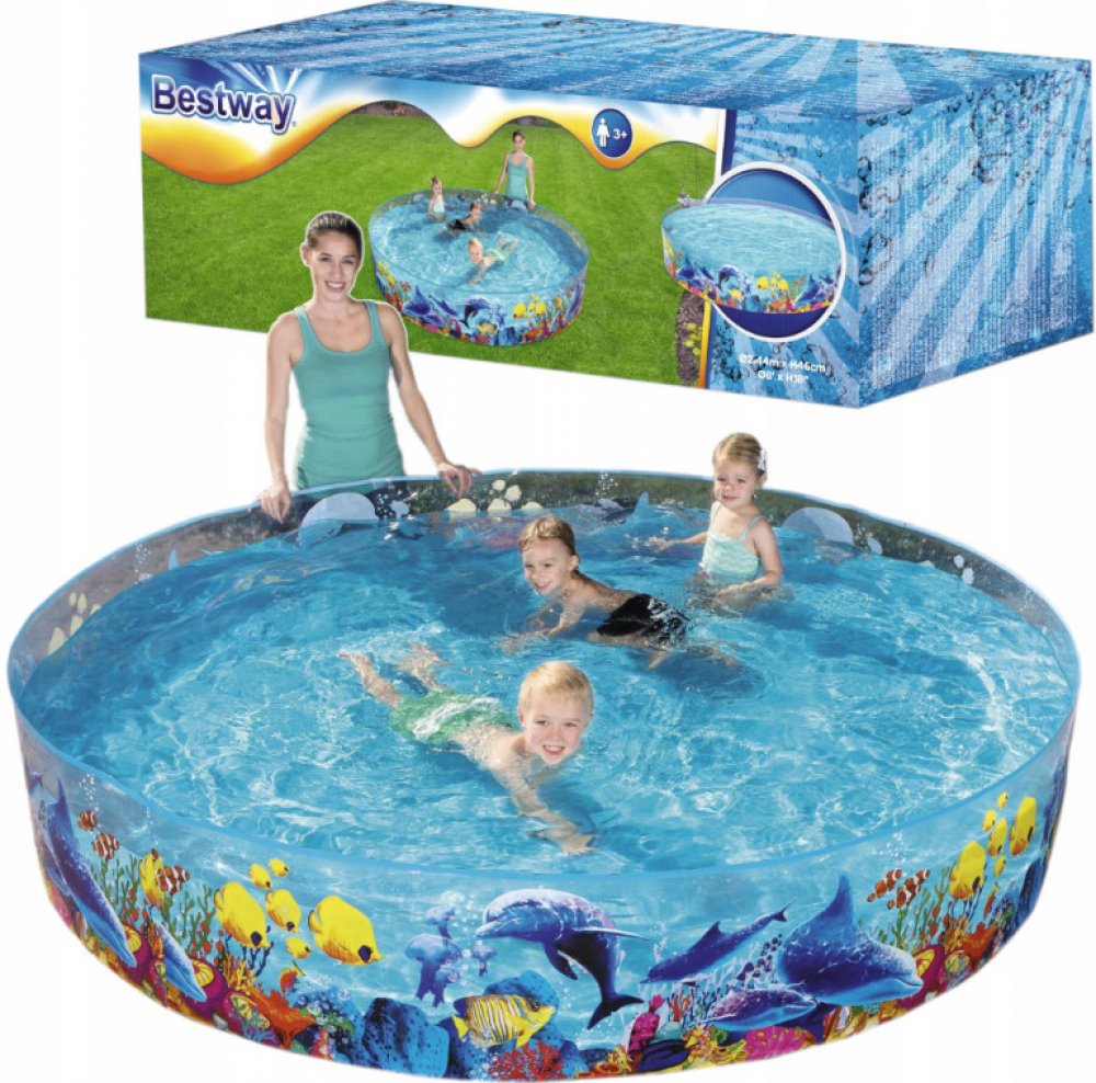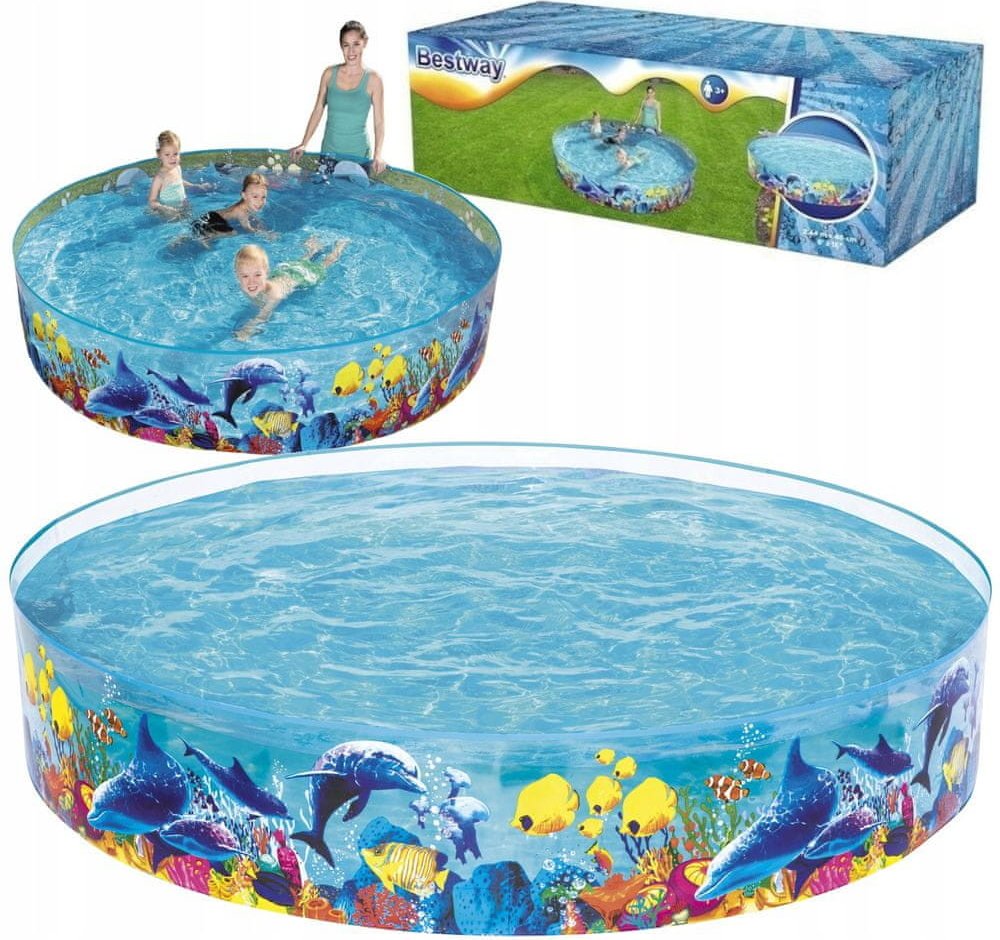 Dětský bazén s pevnou stěnou Bestway Sea. Barevný samostavěcí bazén pro děti s motivem Nema. Bazén má po obvodu pevnou stěnu, která Vám pouhým naplněním vody, bazén postaví. Vhodné pro deti od 3 let. Rozměry: 244x46 cm. Složení: vinyl. Obsah: 2074l.