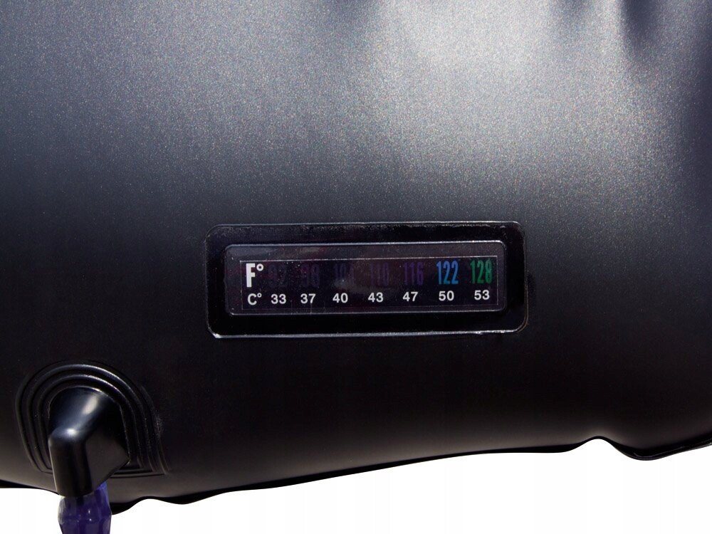 Sluneční energie pro ohřev vody – černý povrch sprchy absorbuje sluneční světlo a ohřívá vodu na příjemných 48 °C již po 2-3 hodinách na přímém slunci