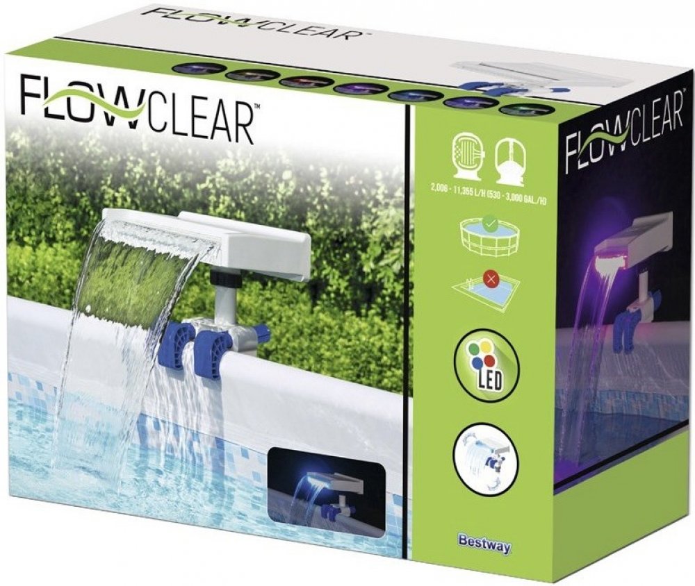 Tento vodopád je kompatibilní se všemi filtračními systémy s průtokem 2 006–11 355 l/h. Nabídne vám neuvěřitelnou hru jasných světel. Ponořte se do vody, užívejte si duhové barvy a přepínejte mezi 8 režimy se 7 stálými barvami a 1 měnícím se režimem. Čistá a jemná kaskáda vody zvyšuje váš zážitek z plavání a vytváří zajímavý estetický efekt a efekt cirkulace vody. Jakmile jej umístíte na okraj bazénu, už nezbývá nic jiného, než si odpočinout a užívat si kouzelnou atmosféru vodopádu a jeho jasné barvy!