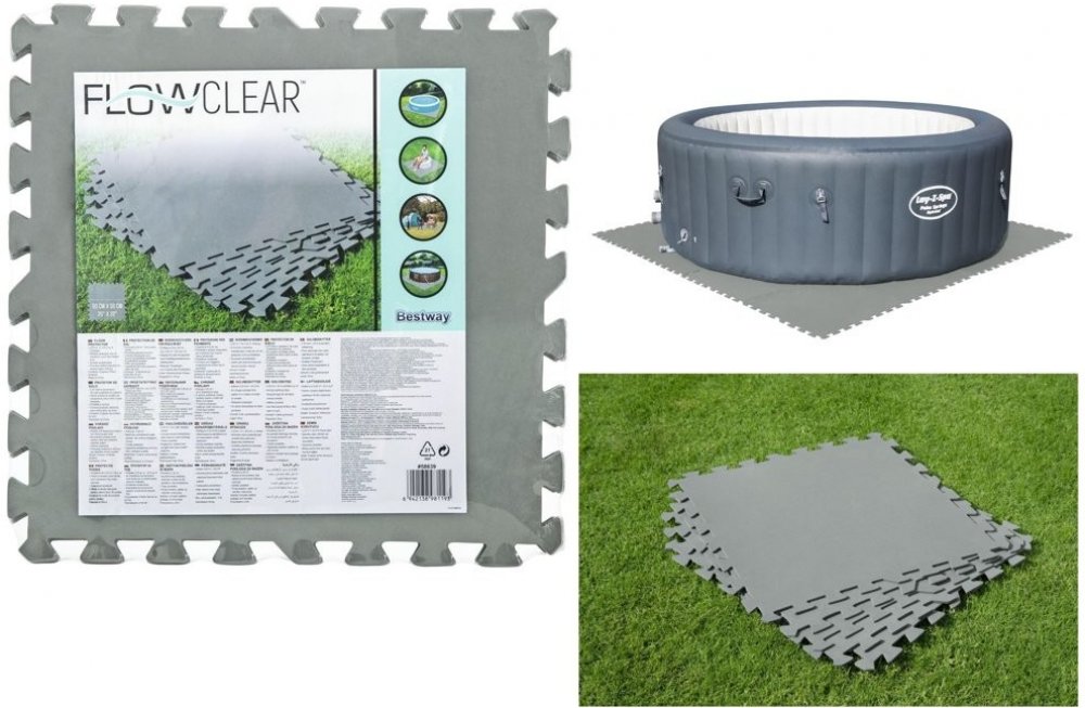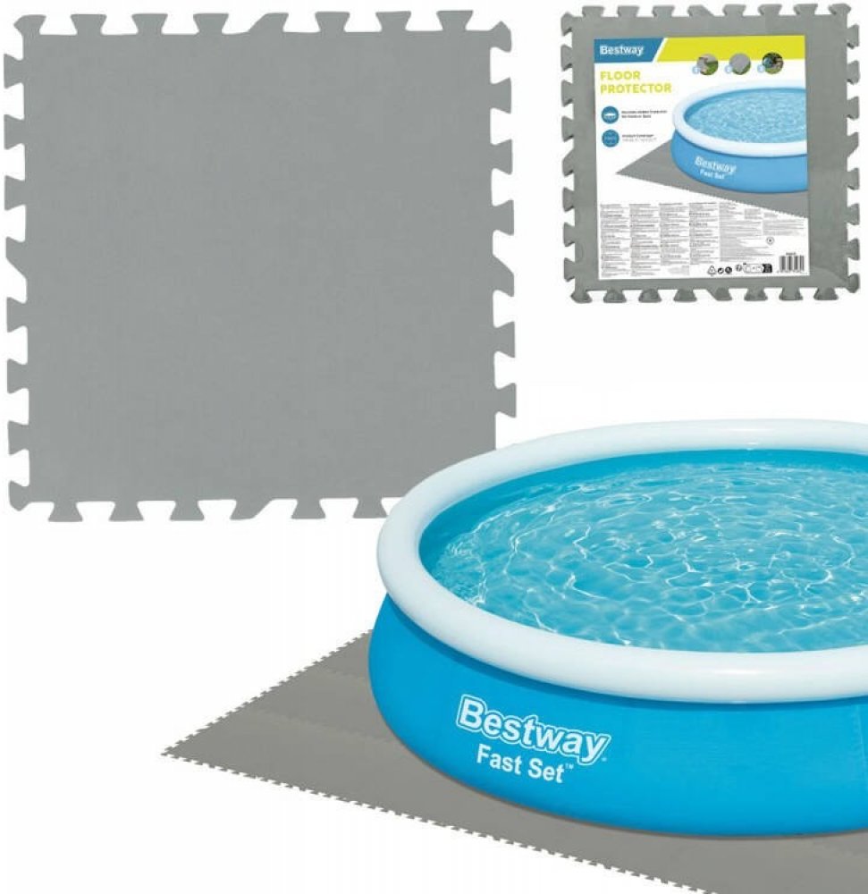 Sada ochranných dlaždic se skládá z 9 čtvercových dlaždic vyrobených z robustního polyetylenu, které se umístí pod váš nadzemní bazén. Tyto šedé dlaždice jsou navzájem spojeny pomocí zásuvného systému, který zajišťuje stabilitu a lze je rozšířit o jakoukoli jinou sadu. Bazén je chráněn nejen proti opotřebení, ale také optimálně chráněn proti opotřebení oblázky, ostrými větvičkami a jinými hrboly. Přetékající voda se shromažďuje na povrchu, což zabraňuje měknutí půdy - tak vypadá optimální ochrana vašeho trávníku a bazénu.