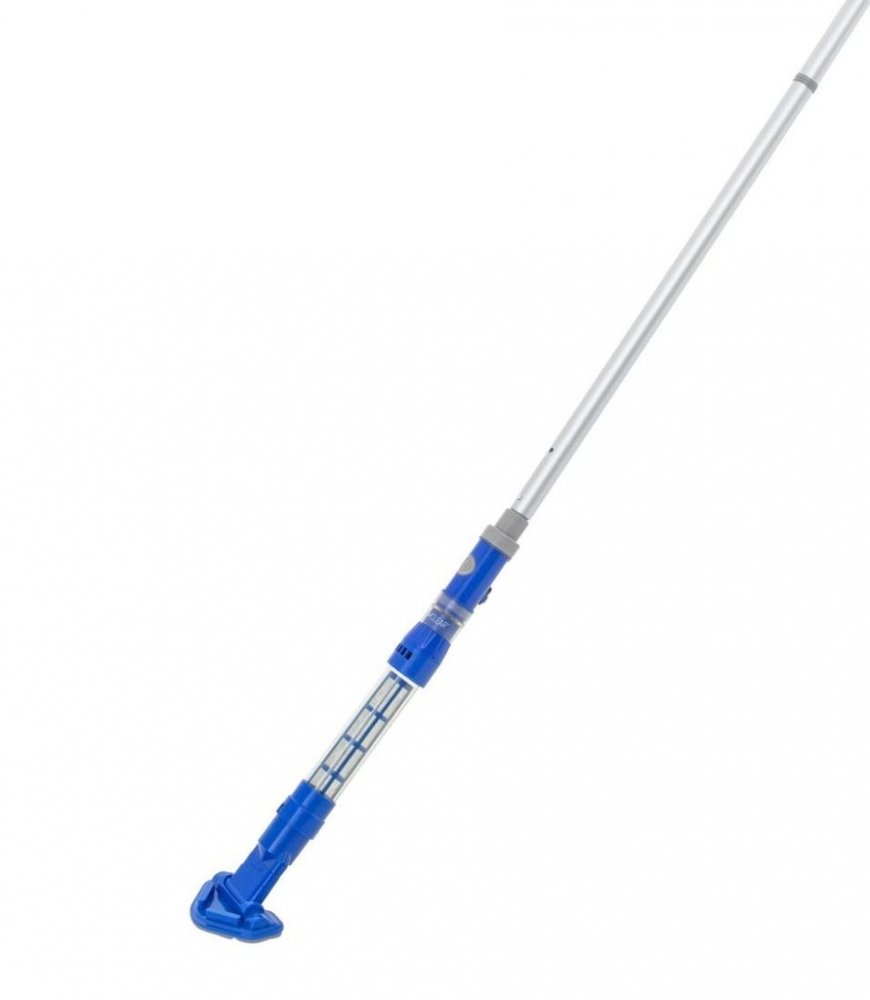 Je vybaven praktickou dobíjecí baterií, nemusíte se tedy bát, že by vám při čištění bazénu překážely kabely. Vysavač může mezi nabitími běžet nepřetržitě po dobu až 50 minut. Dvě přiložené výměnné sací hlavice umožňují čistit rovné stěny i rohy bazénu. Ovládá se jednoduchým stisknutím tlačítka, takže bude čištění hračkou. S 3dílnou tyčí lze tento vysavač použít v bazénech o průměru až 6,1 m. Průhledná přihrádka vás udržuje v obraze o množství nečistot, takže přesně víte, kdy je třeba vysavač vyprázdnit.