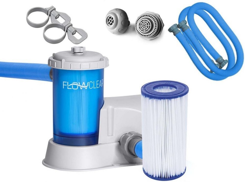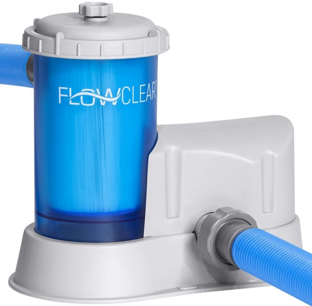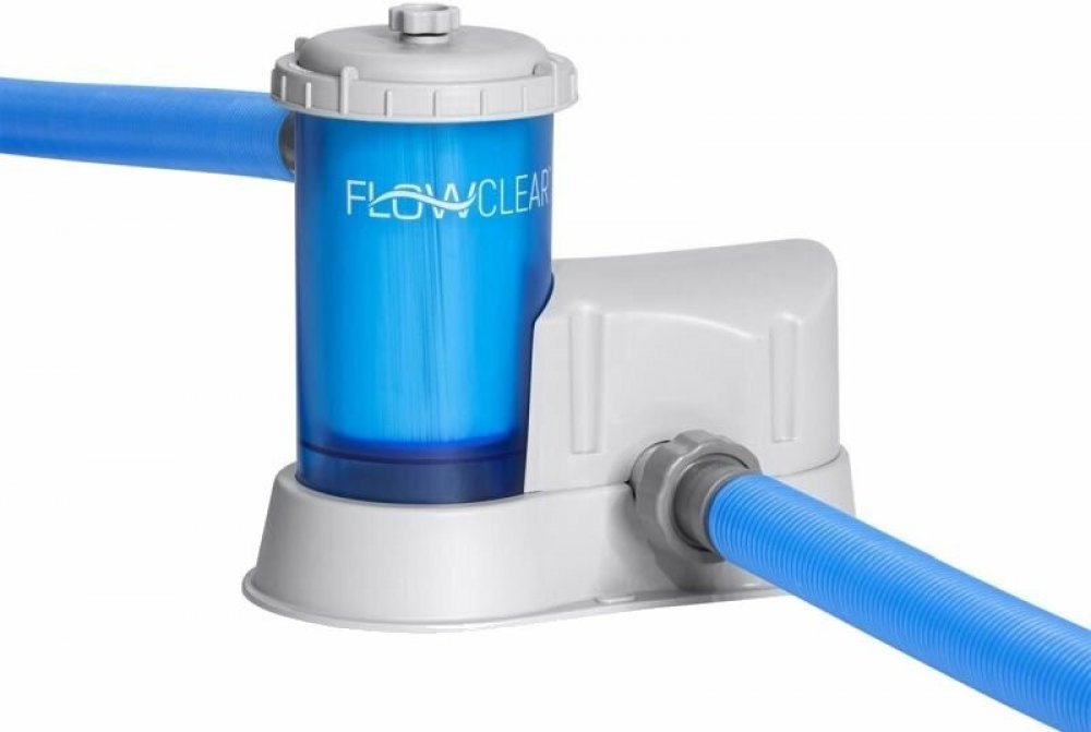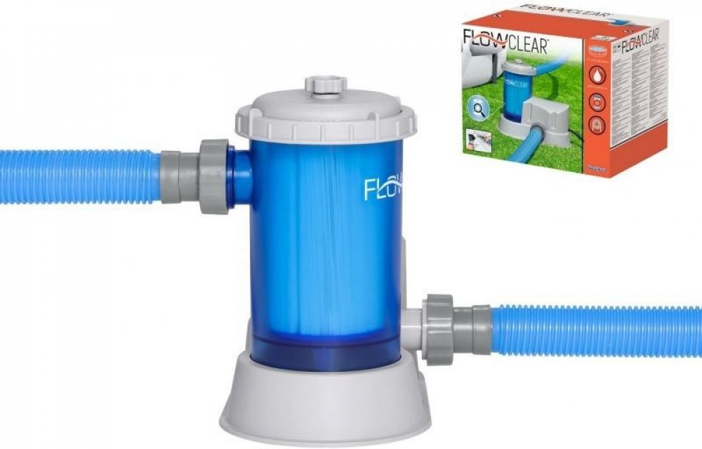 Průhledné kartušové filtrační čerpadlo Flowclear od značky Bestway je nepostradatelnou součástí vybavení bazénu a slouží jako součást systému cirkulace vody. Pomáhá v bazénu udržovat stálý tok čisté, průzračné a hygienicky nezávadné vody.