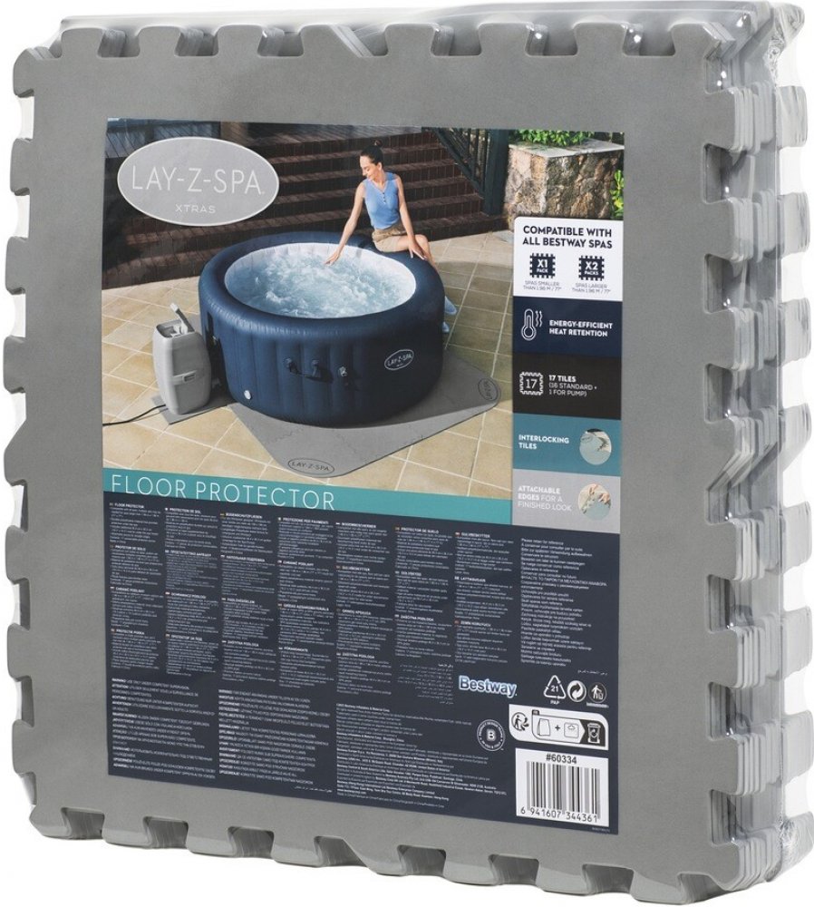 Odolná podložka ochrání dno vaší vířivky před poškozením a chladem. Balení obsahuje sestavitelnou podložku pod vířivku a samostatnou podložku pod filtraci. Izolační podložka je určena pro vířivky BESTWAY Lay-Z-Spa.