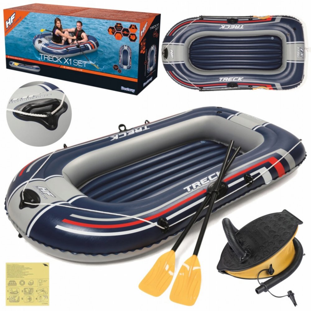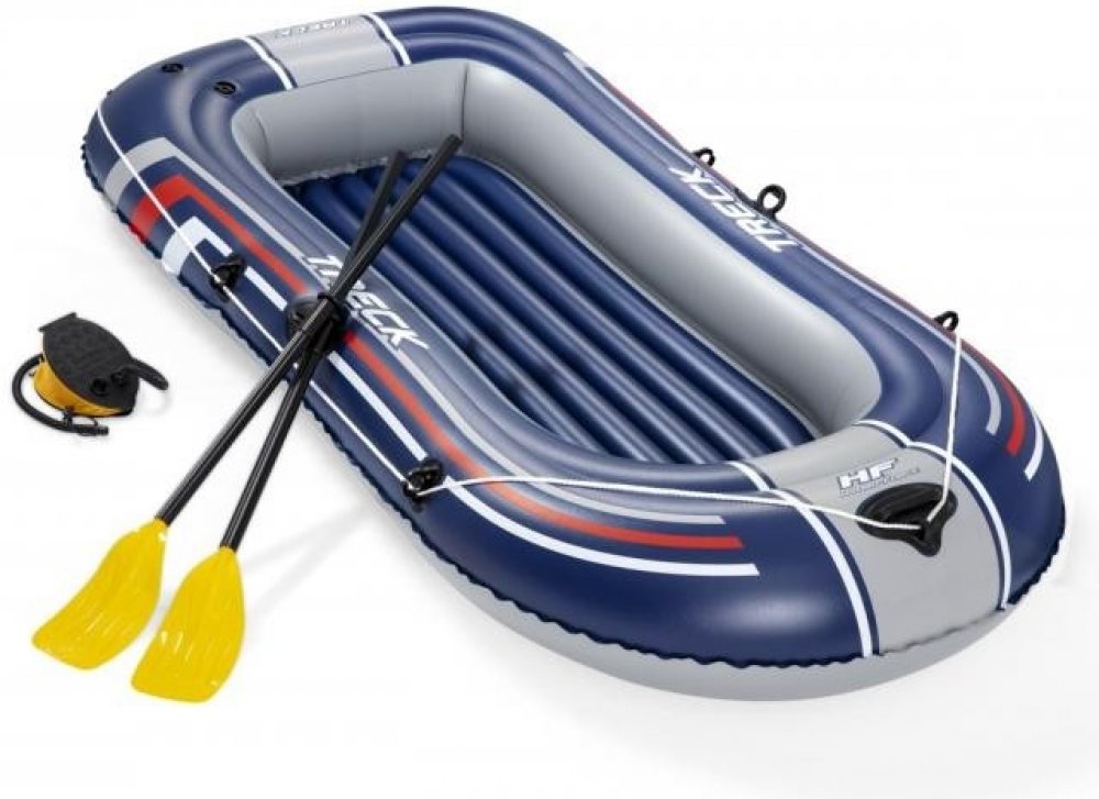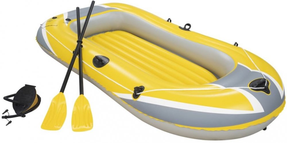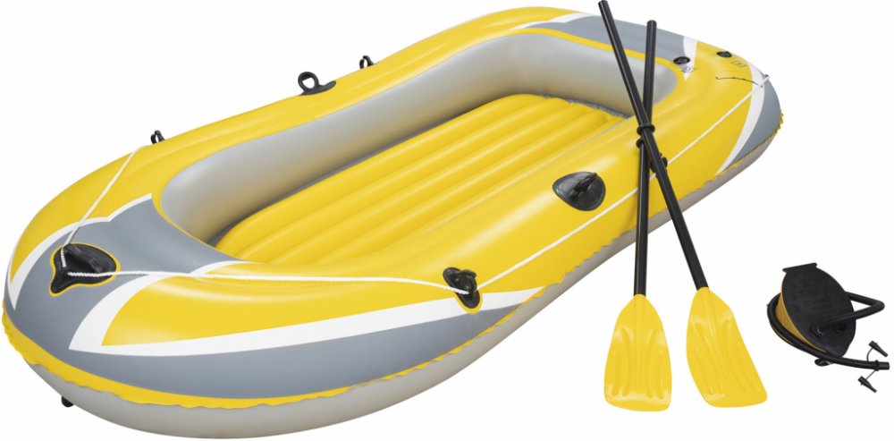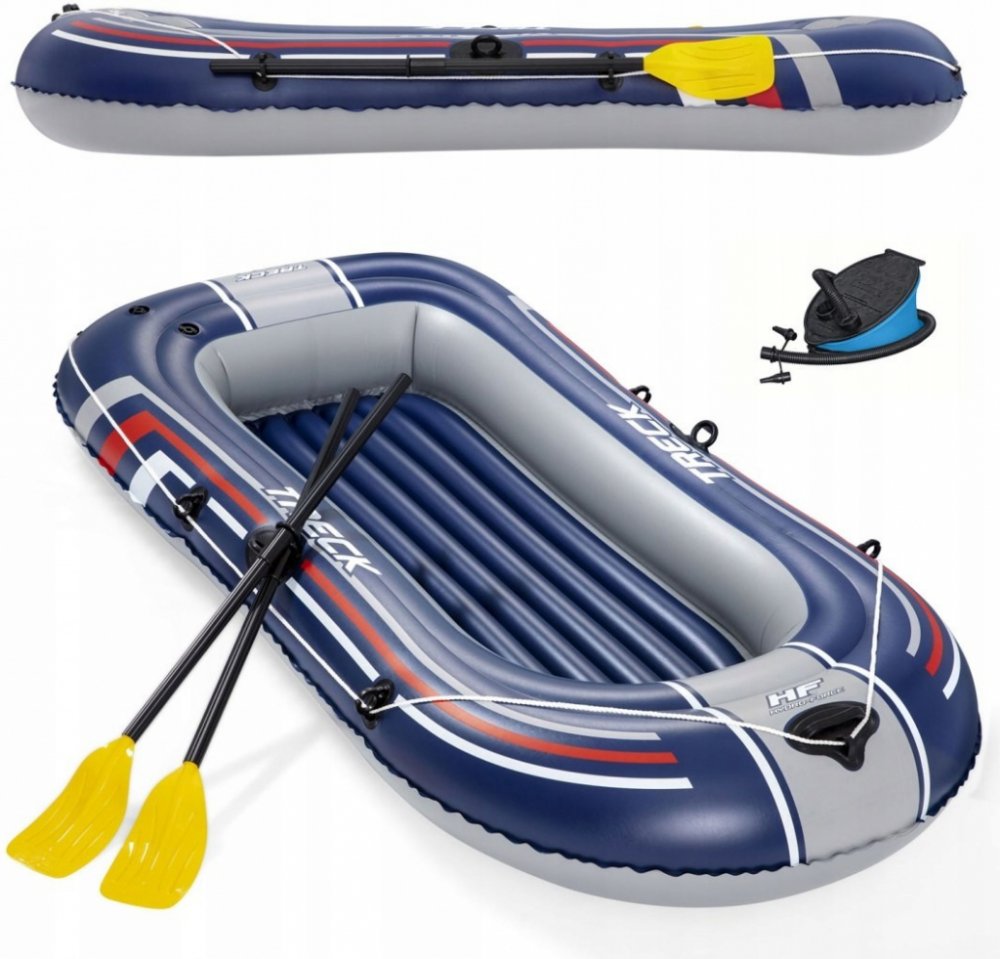 Výlet k vodě je ideální formou trávení volného času se svými blízkými. Pro zpestření této bezstarostné chvíle se vybavte doplňkovým bazénovým příslušenstvím. Bazénový člun je určen pro tři osoby a bude ideální pro rekreační výlet na jezeře nebo koupališti. Byl vyroben z odolného vinylu odolného proti poškození. Podlaha v pontonu je nafukovací, což zvyšuje komfort sezení. Vesla obsažená v sadě se ideálně hodí pro celodenní veslování. Silná madla a tažné kolo umožňují jednoduchý a snadný transport. Člun je také vybaven ventilem, díky kterému můžete po expedici rychle vyprázdnit komory vzduchu.